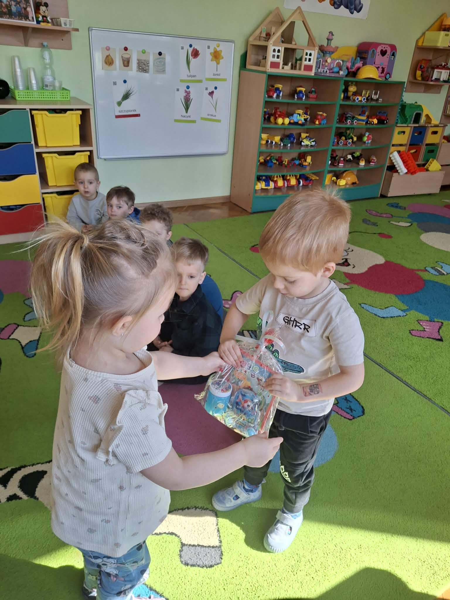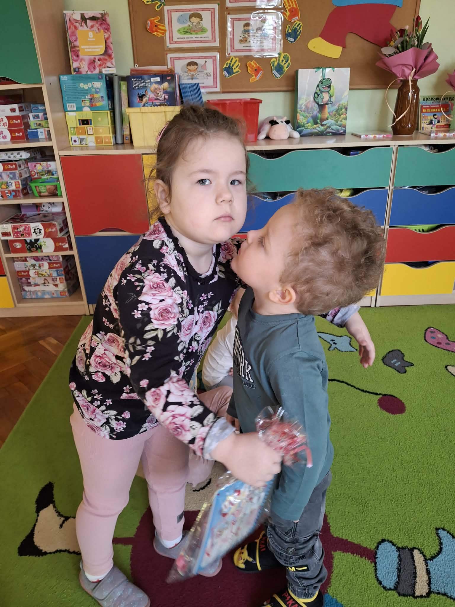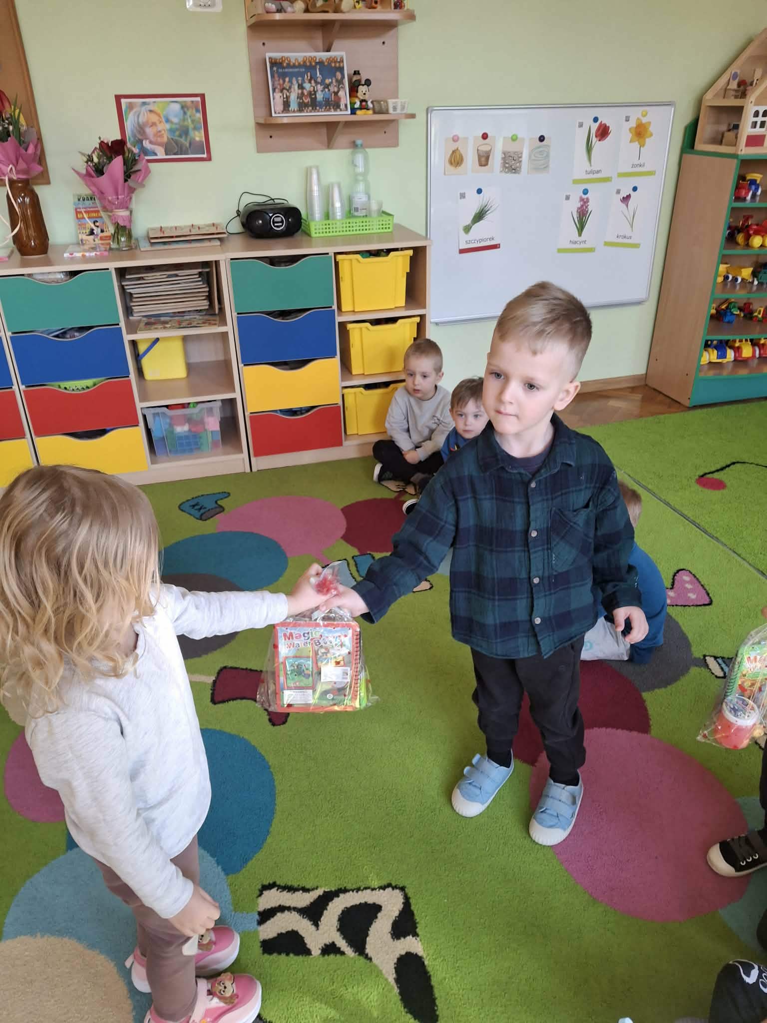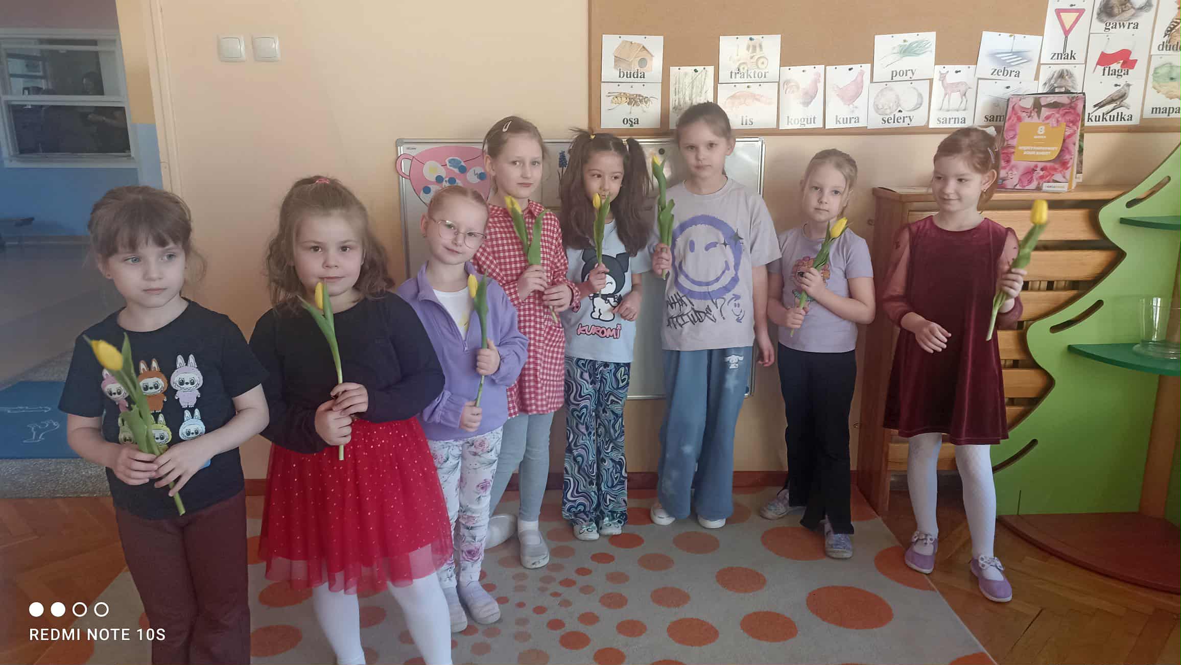 Już od rana chłopcy składali dziewczynkom serdeczne życzenia. Nie zabrakło również drobnych upominków. Dziewczynki z dumą przyjmowały kwiatki oraz miłe słowa od swoich kolegów.