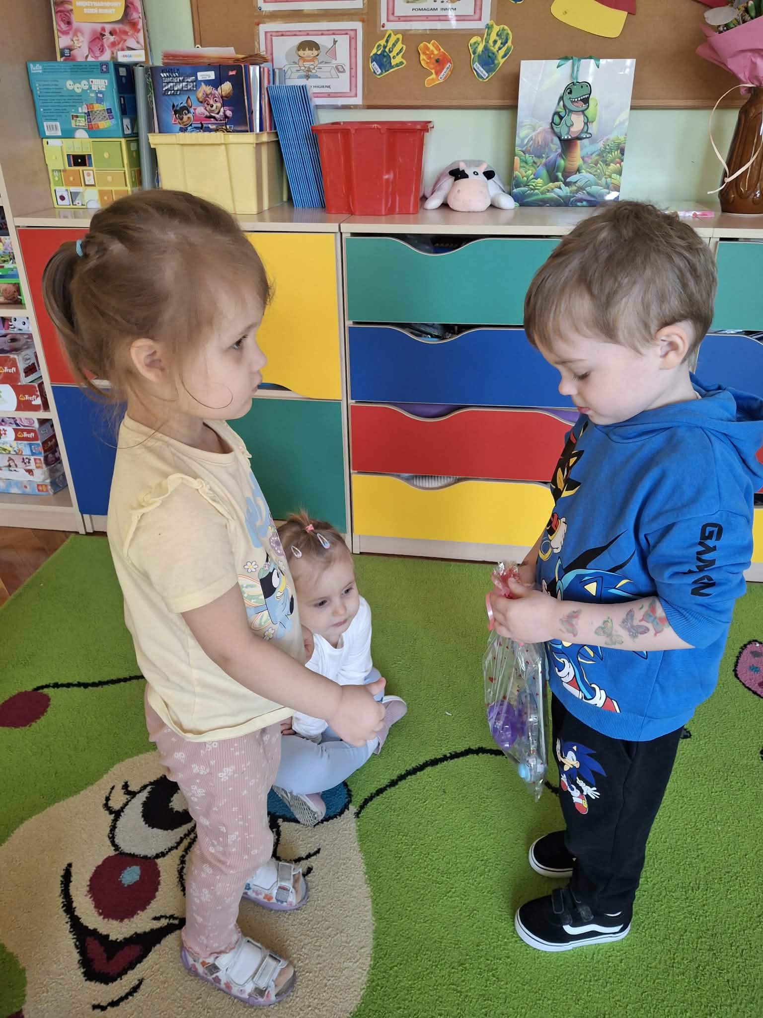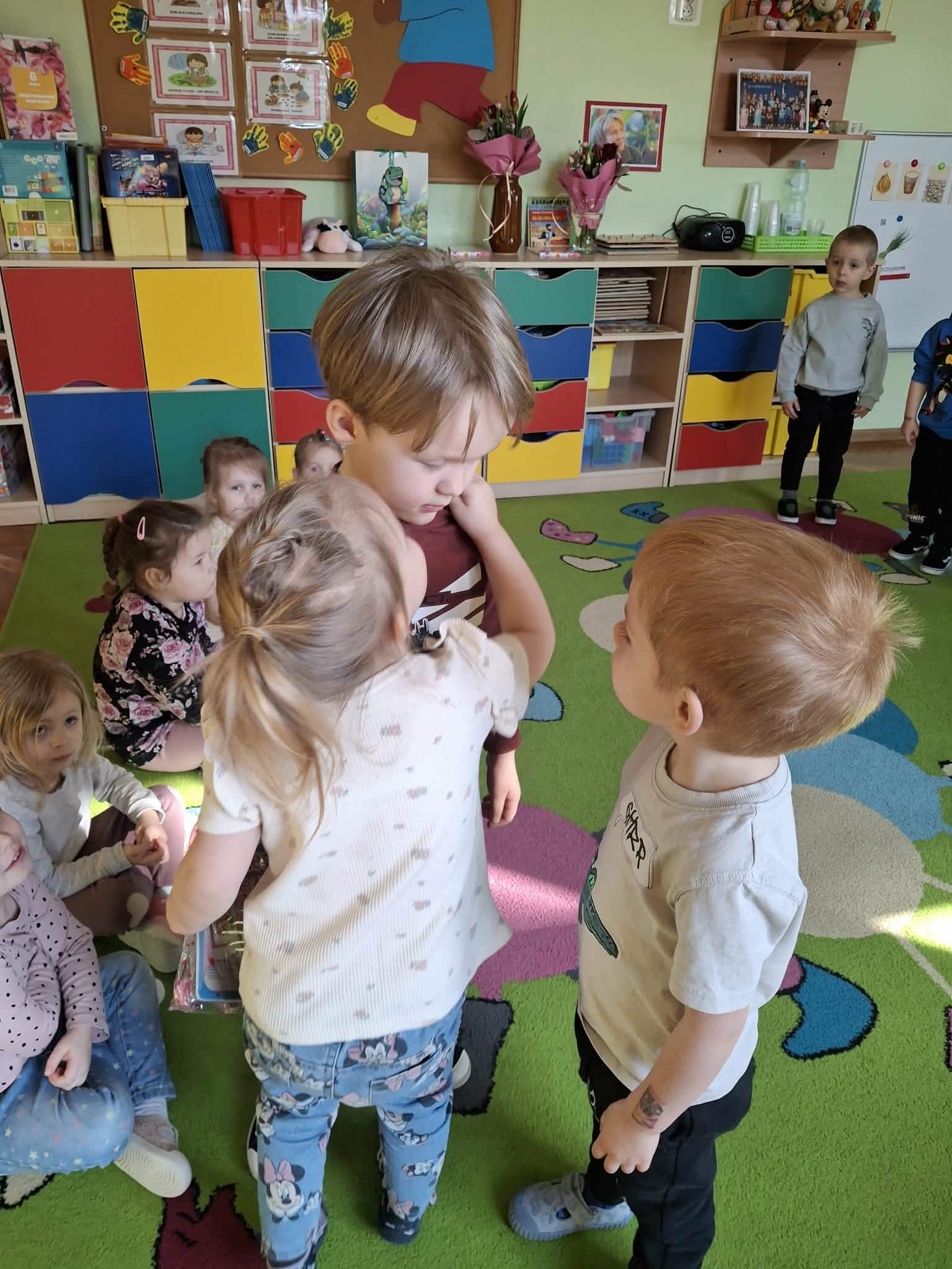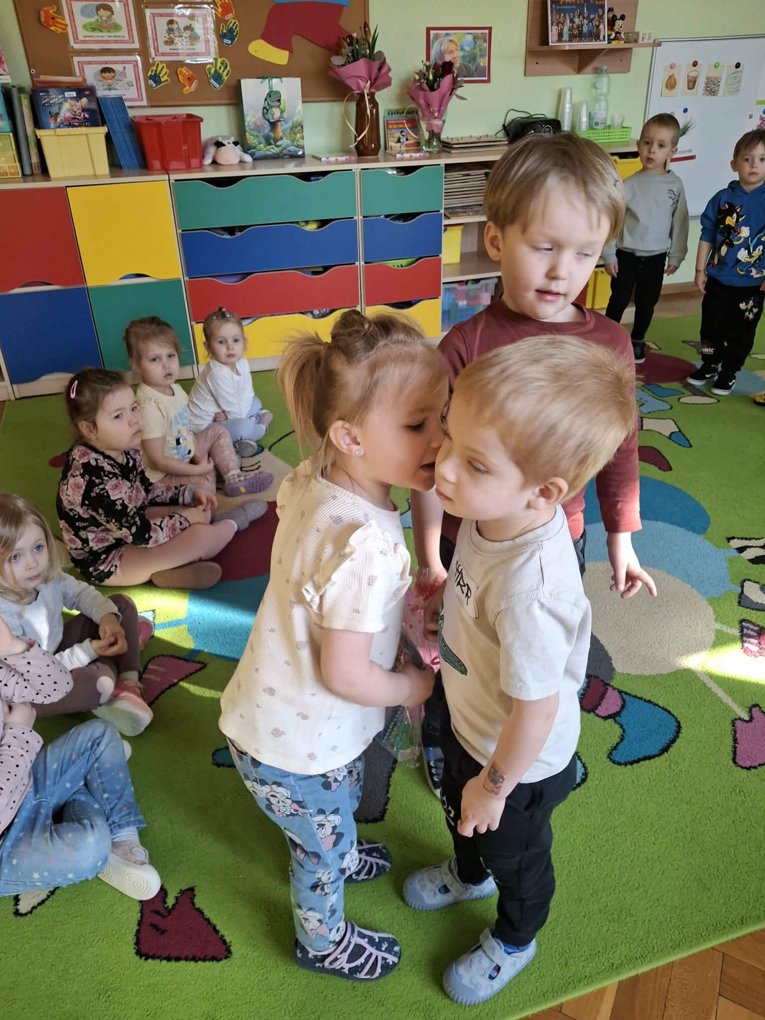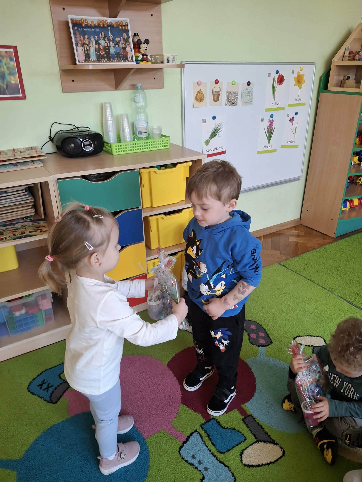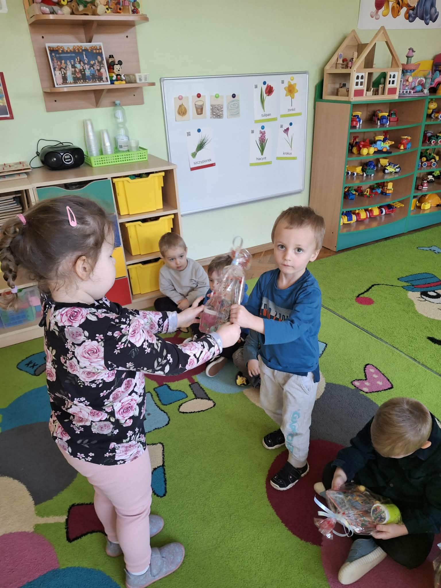 Już od rana chłopcy składali dziewczynkom serdeczne życzenia. Nie zabrakło również drobnych upominków. Dziewczynki z dumą przyjmowały kwiatki oraz miłe słowa od swoich kolegów.