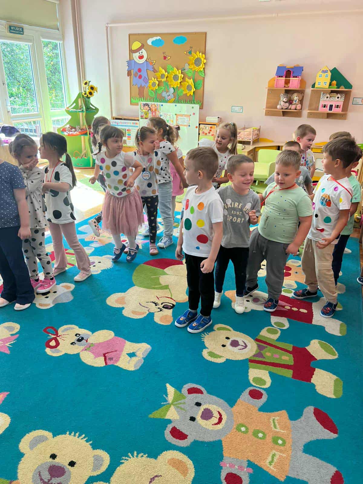 15 września w naszym przedszkolu obchodziliśmy DZIEŃ KROPKI.. Na zajęciach dzieci poznały historię tego święta Przedszkolaki dowiedziały się, że jest to święto, które ma na celu pobudzanie kreatywności, pomysłowości, talentu i odwagi w pokonywaniu trudności. Dzisiejszego dnia wiele dzieci miało na ubraniach kropki i okazało się także, że kropki towarzyszą nam w codziennym życiu. Są na skrzydełkach biedronki, na kapeluszu muchomora czy na sukience lalki. Dzieciaki wykonały prace plastyczne, brały udział w zabawach matematycznych i muzycznych z kropką w roli głównej. Był to dzie kolorowy i wesoły.