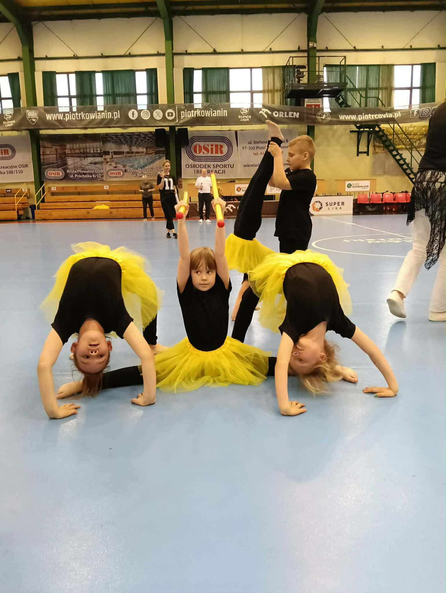 Kolejnym zadaniem było wykonanie piramidy gimnastycznej. Wymagało to nie tylko sprawności fizycznej, ale także współpracy, koordynacji i wzajemnego zaufania. Dzieci świetnie poradziły sobie z tym wyzwaniem, pokazując, jak ważna jest praca zespołowa.