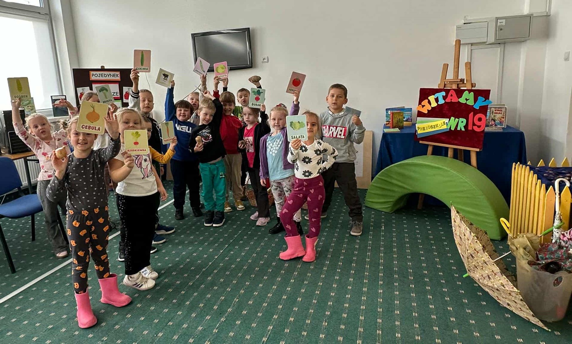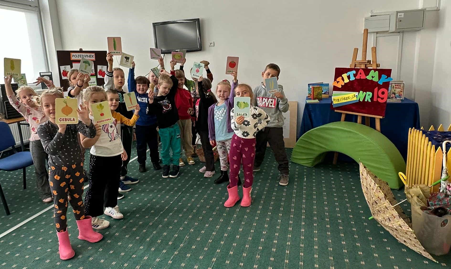 Dzieci przeniosły się do świata wierszy o warzywach. Poznały utwory znanych autorów, m.in. „Na straganie” Jana Brzechwy i „Warzywny teatrzyk” Doroty Gellner. W koszyku pojawiły się marchewki, pomidory, ogórki i cebulki – każde warzywo miało swoją literacką opowieść. Przedszkolaki wspólnie z prowadzącą recytowały wiersz " Na straganie", śpiewały piosenki i odgadywały zagadki o warzywach. To był dzień pełen radości, śmiechu i zabawy z literaturą.