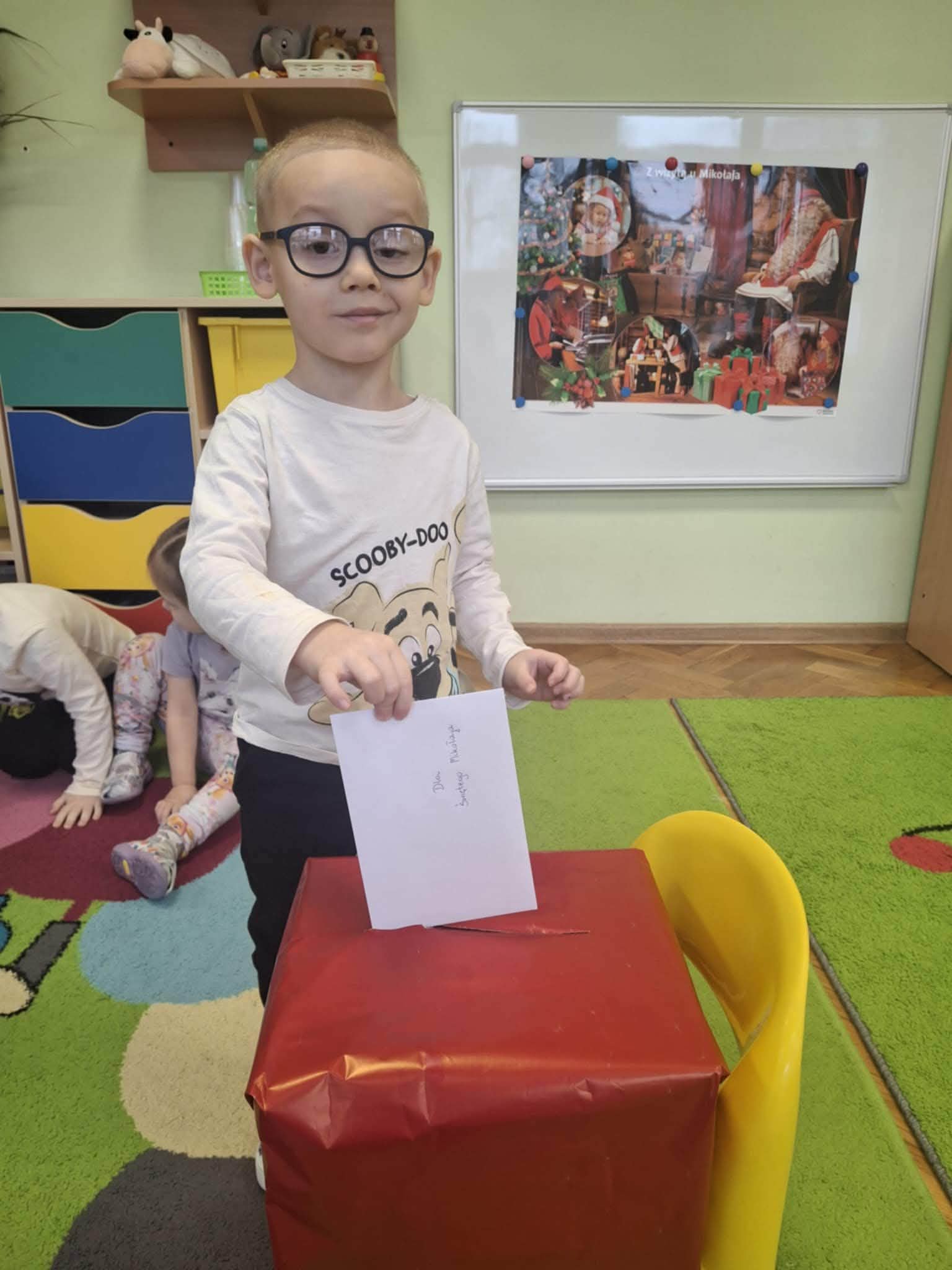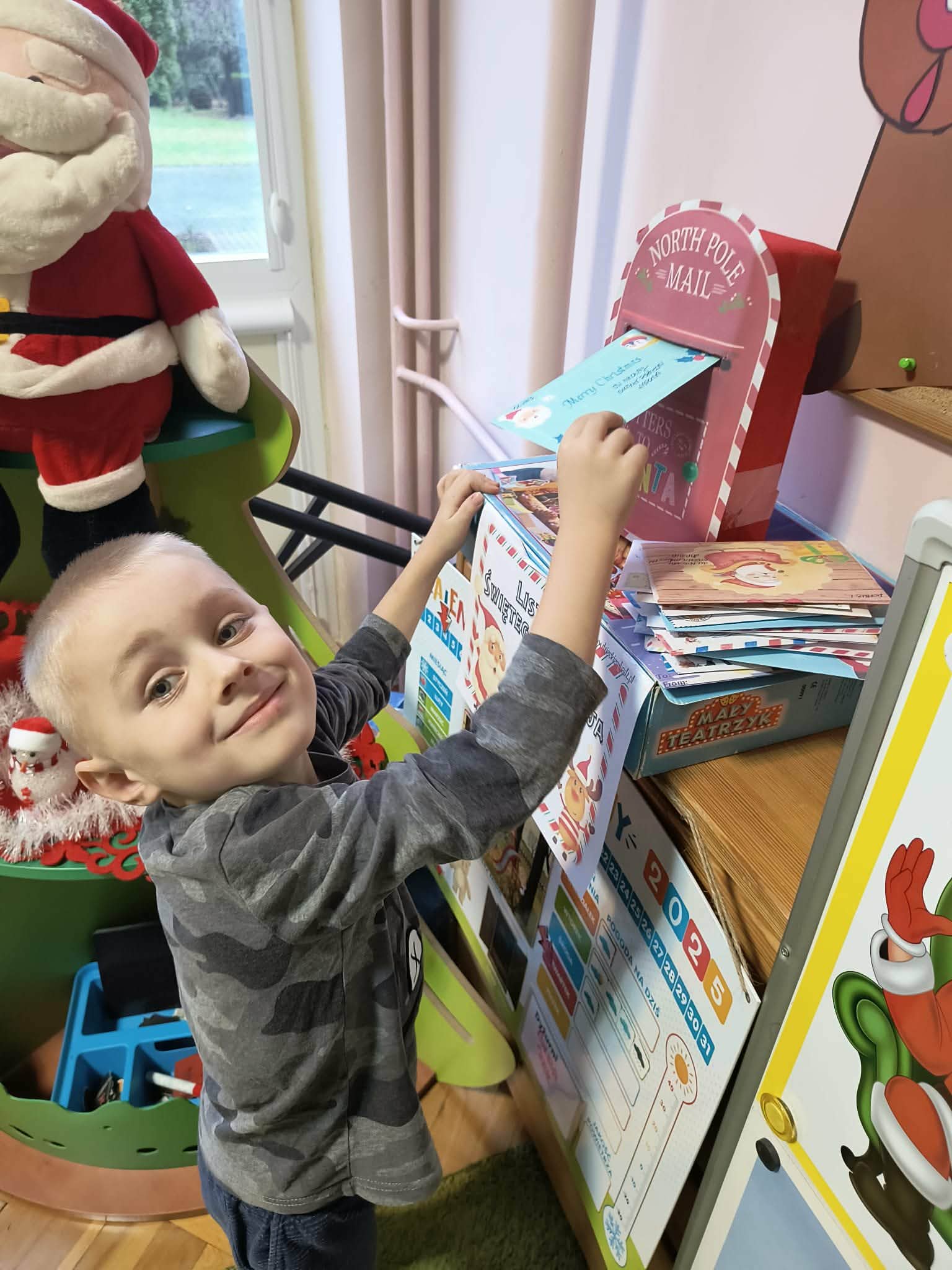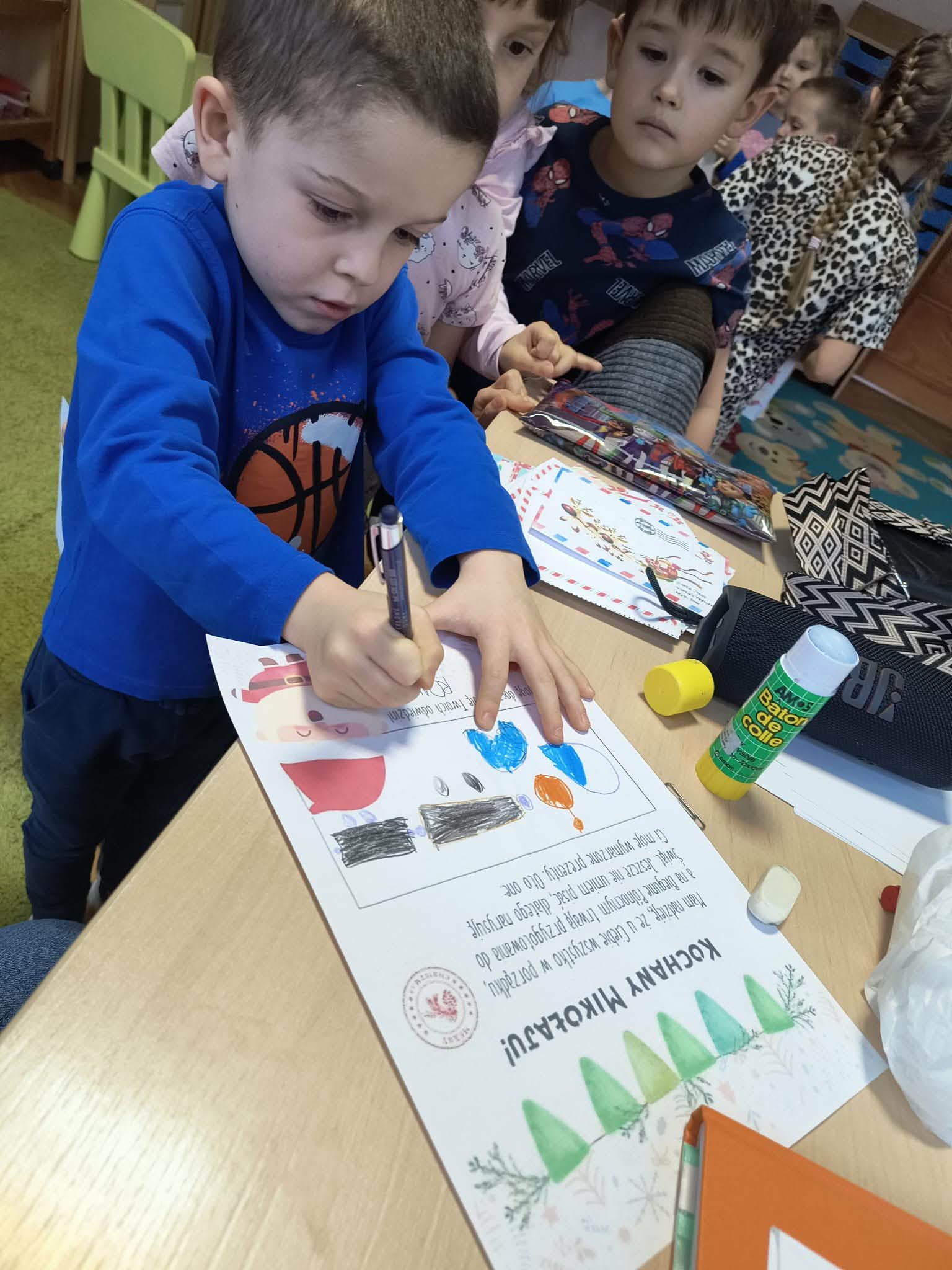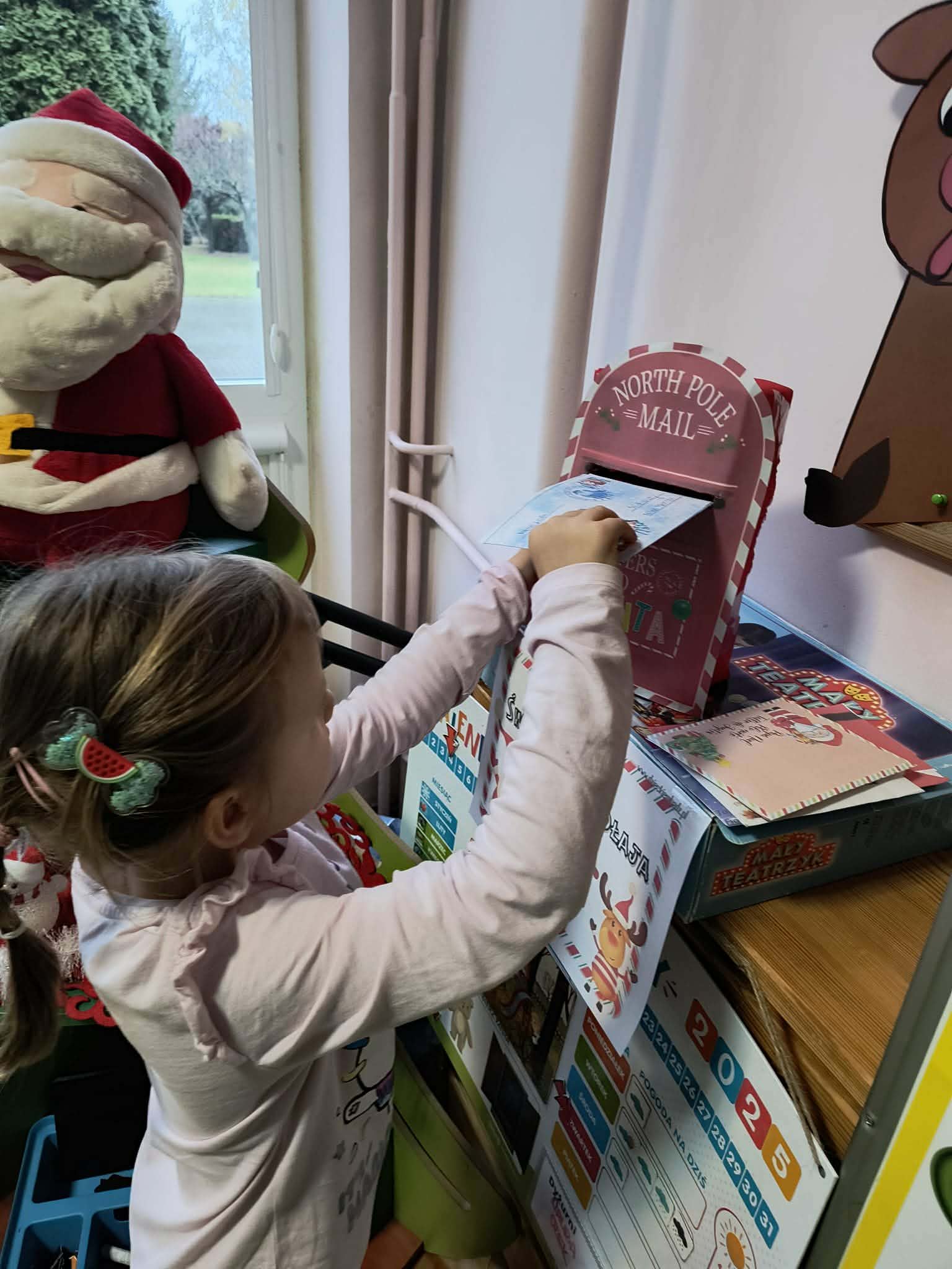 Podczas zajęć przedszkolaki opowiadały o swoich marzeniach, ćwiczyły formułowanie próśb w uprzejmej formie oraz tworzyły kolorowe, starannie ozdobione listy. Nie zabrakło rysunków, naklejek i własnoręcznie wykonanych dekoracji. Gotowe listy zostały uroczyście wrzucone do „Skrzynki Mikołajowej”, skąd – ku radości dzieci – miały wyruszyć prosto na Biegun Północny.