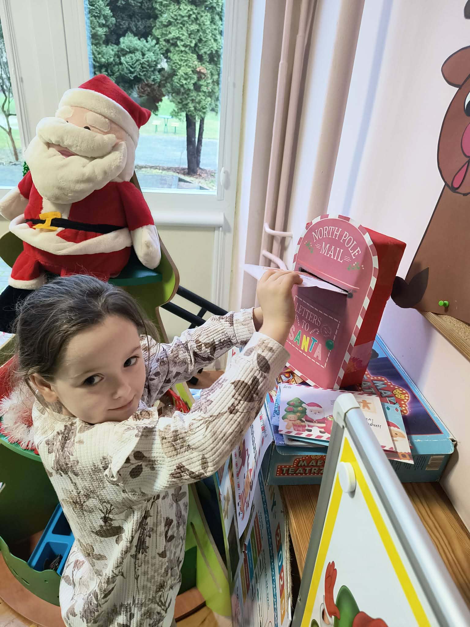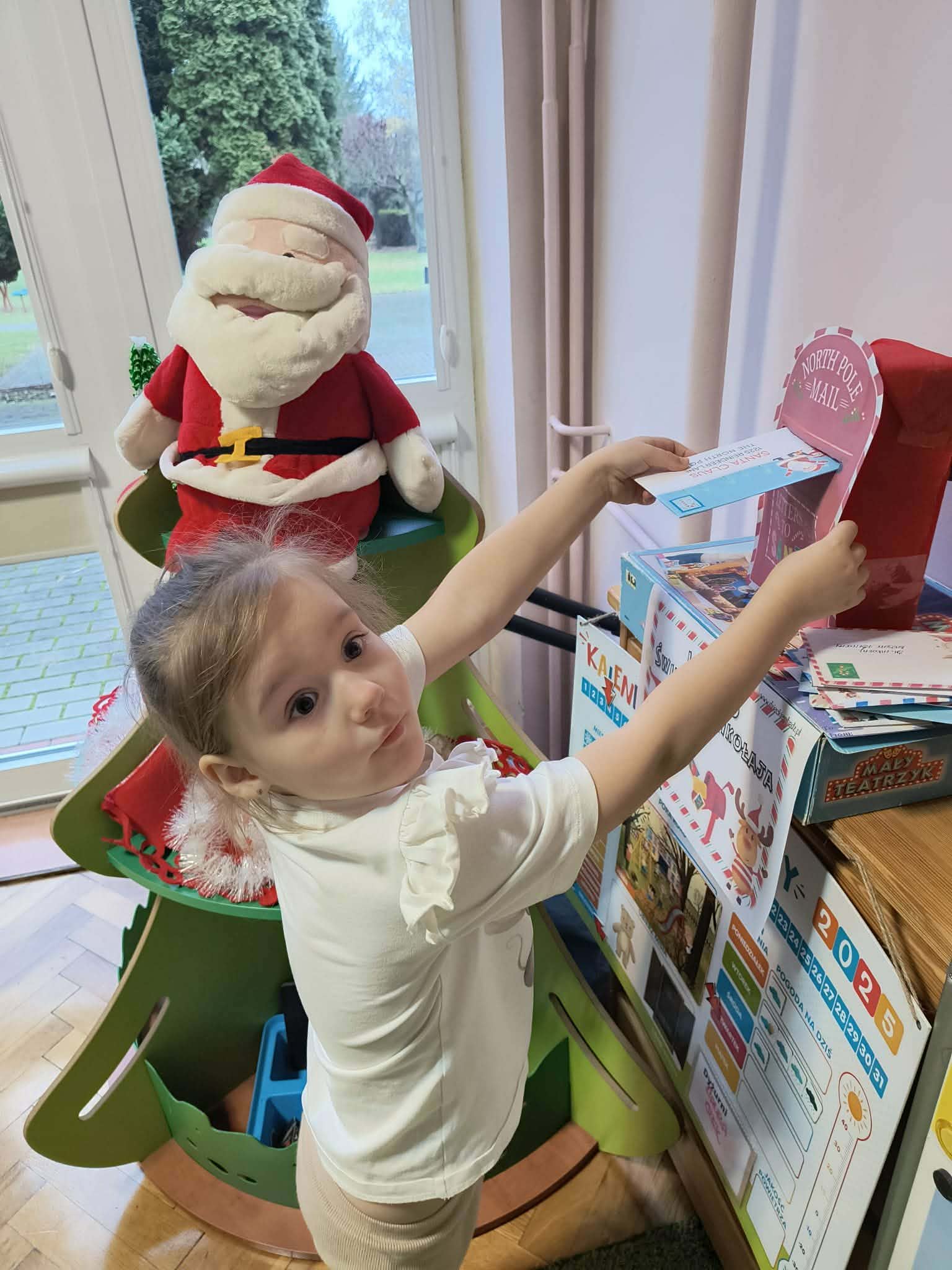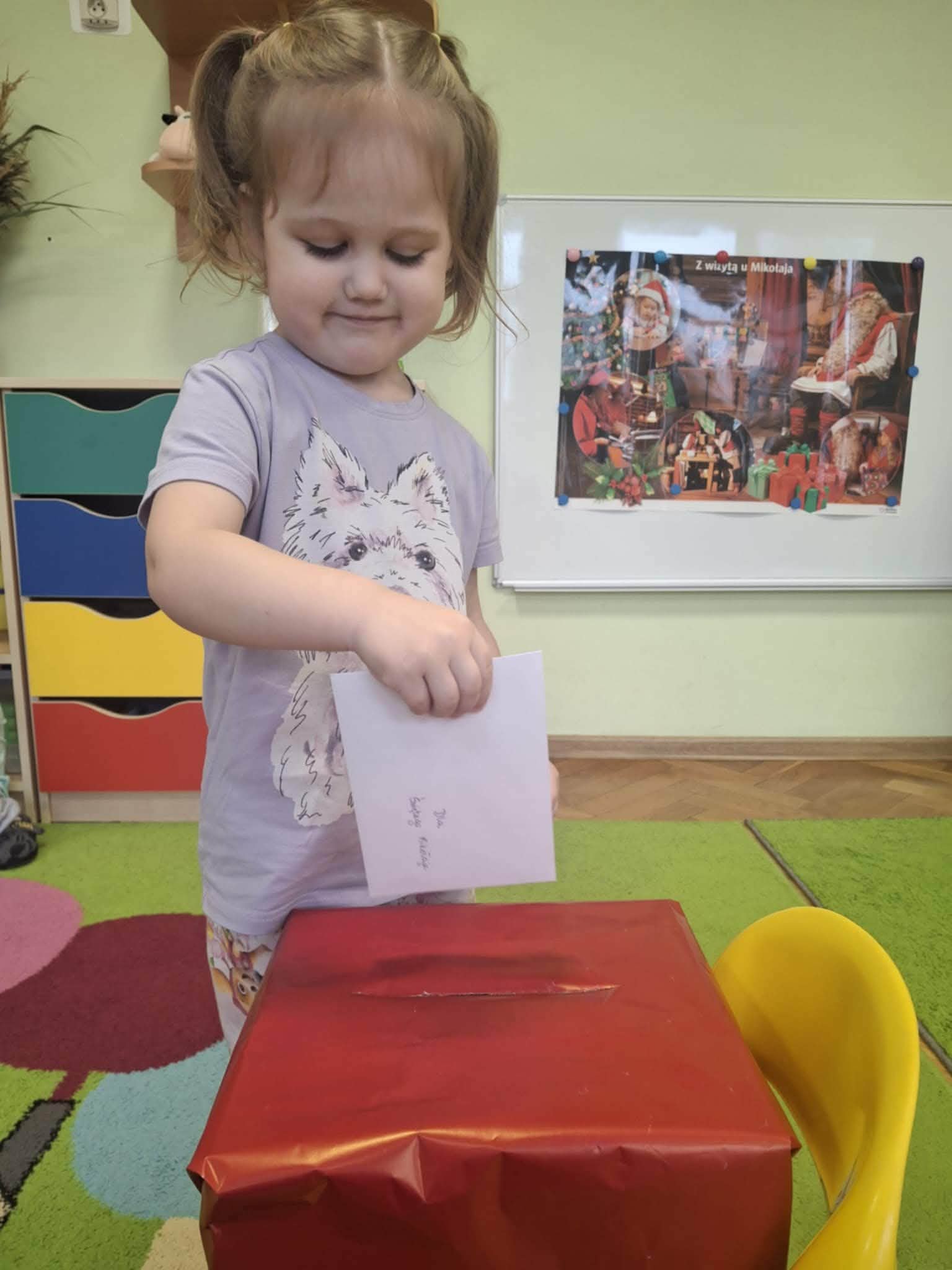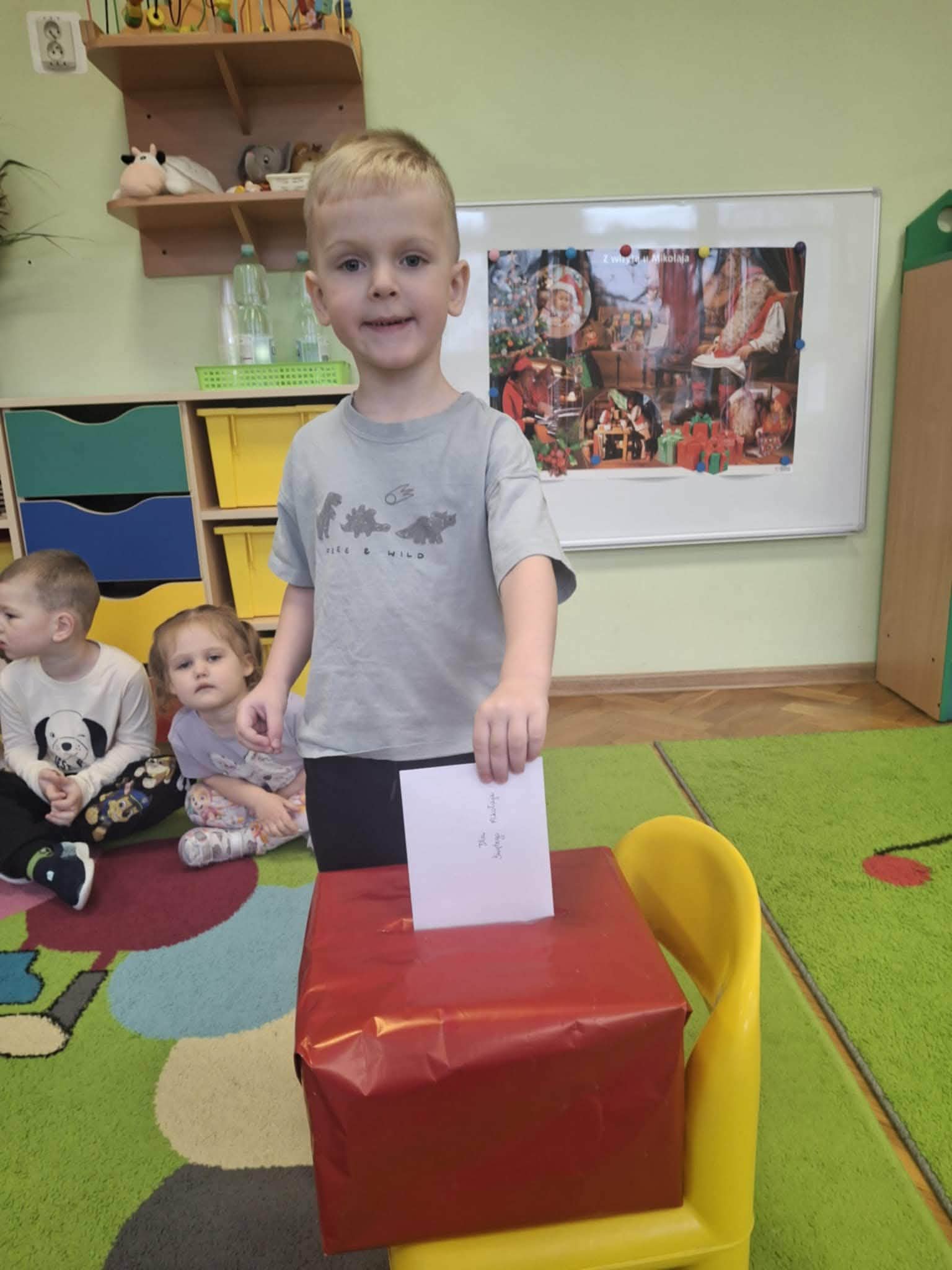 Podczas zajęć przedszkolaki opowiadały o swoich marzeniach, ćwiczyły formułowanie próśb w uprzejmej formie oraz tworzyły kolorowe, starannie ozdobione listy. Nie zabrakło rysunków, naklejek i własnoręcznie wykonanych dekoracji. Gotowe listy zostały uroczyście wrzucone do „Skrzynki Mikołajowej”, skąd – ku radości dzieci – miały wyruszyć prosto na Biegun Północny.