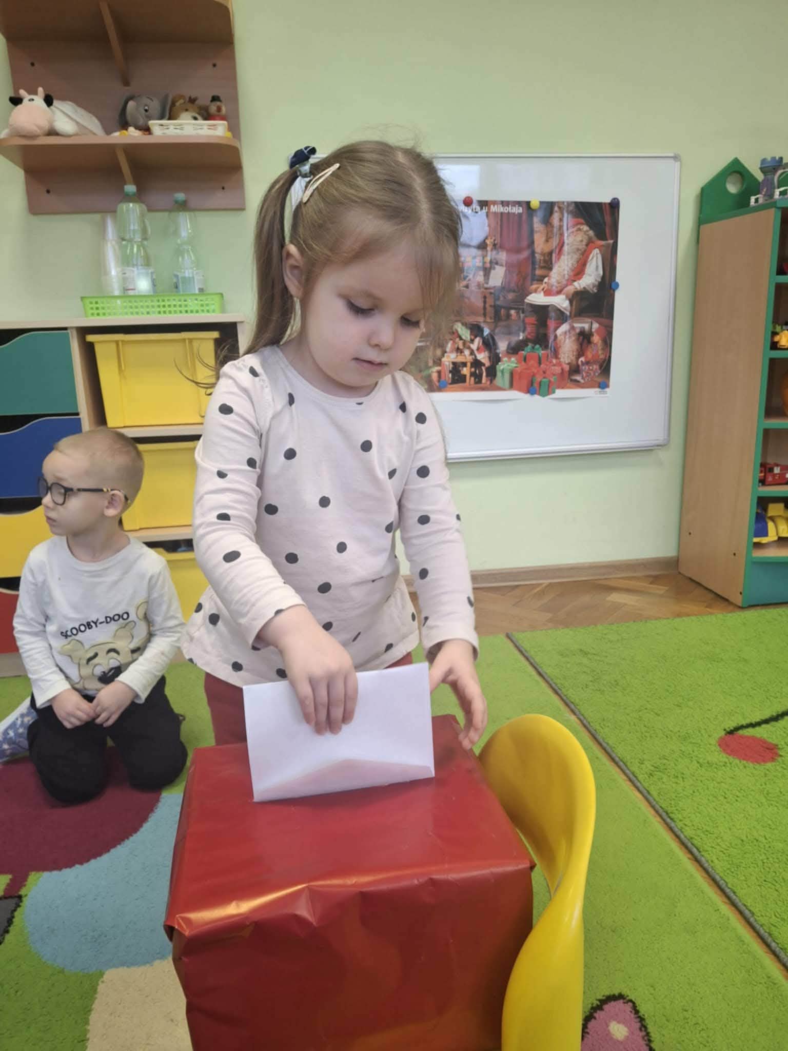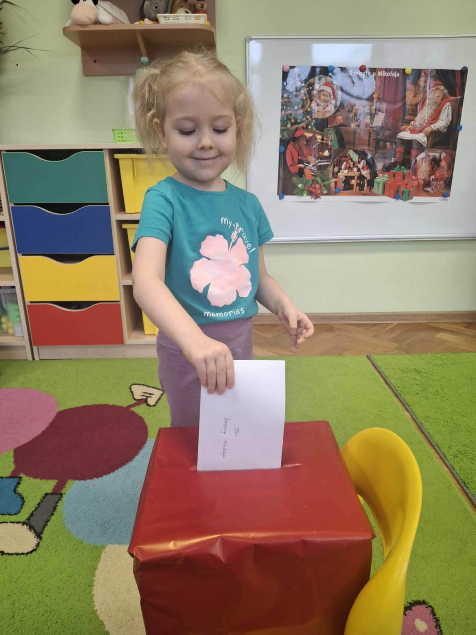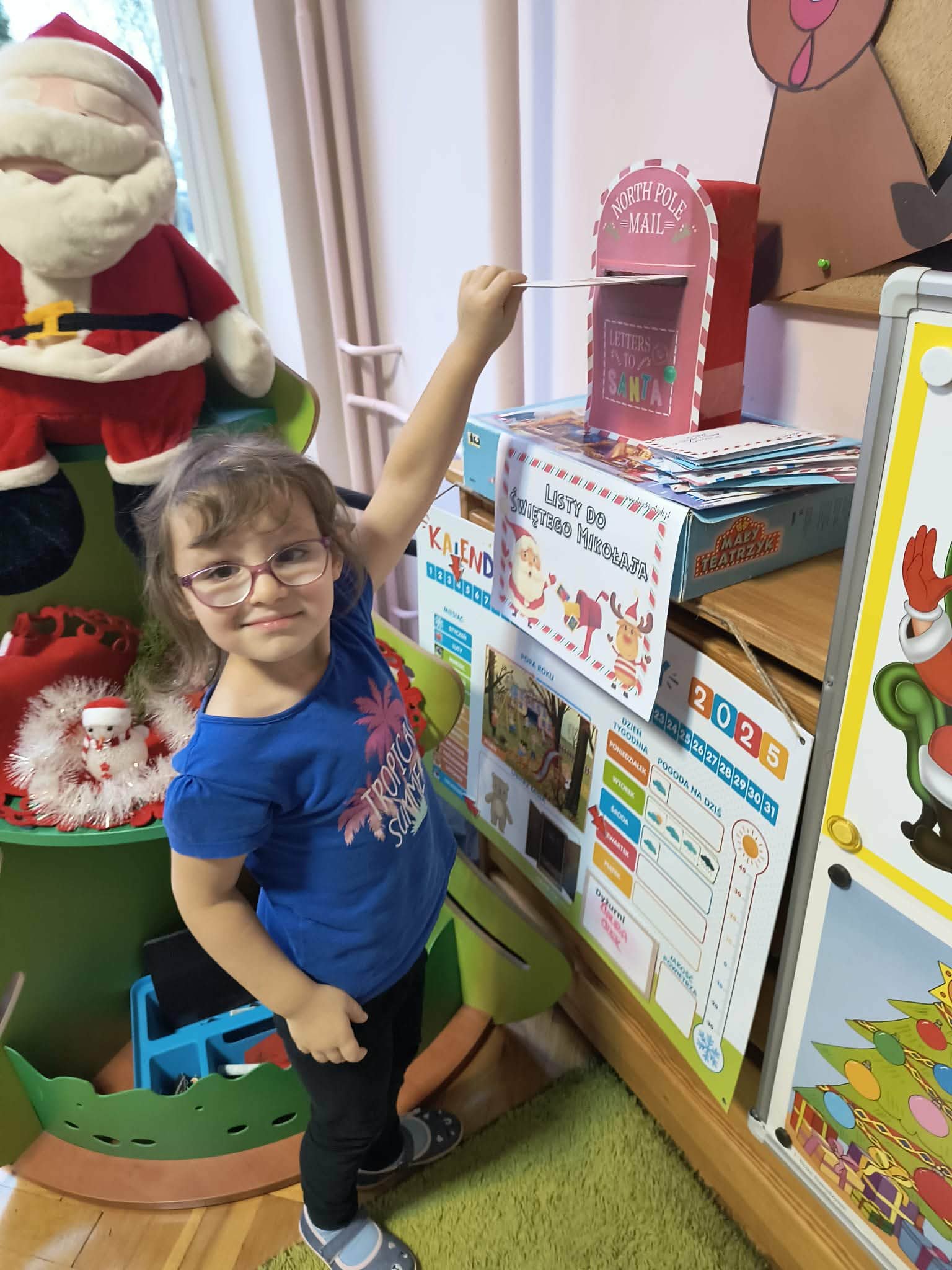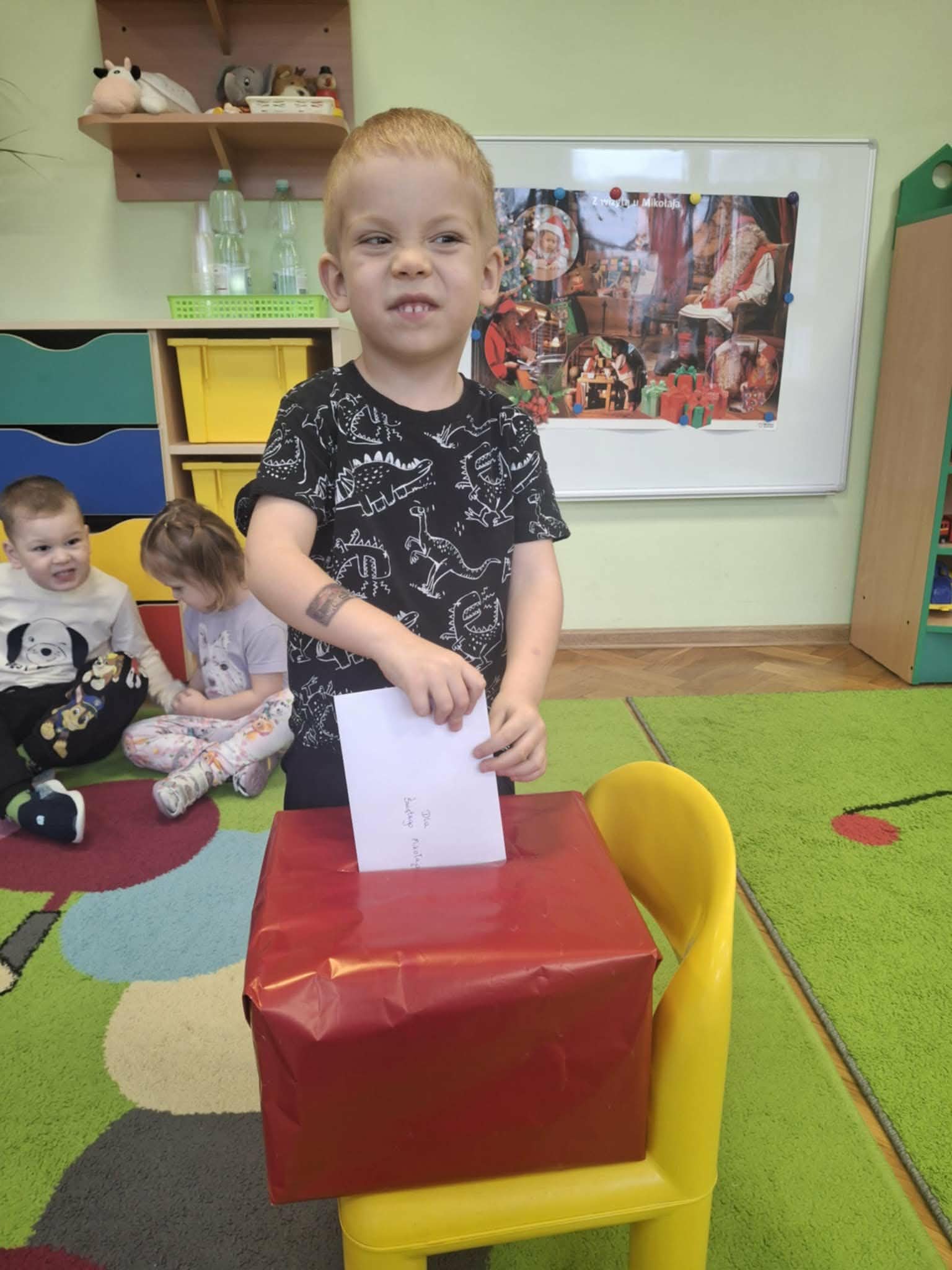 Podczas zajęć przedszkolaki opowiadały o swoich marzeniach, ćwiczyły formułowanie próśb w uprzejmej formie oraz tworzyły kolorowe, starannie ozdobione listy. Nie zabrakło rysunków, naklejek i własnoręcznie wykonanych dekoracji. Gotowe listy zostały uroczyście wrzucone do „Skrzynki Mikołajowej”, skąd – ku radości dzieci – miały wyruszyć prosto na Biegun Północny.