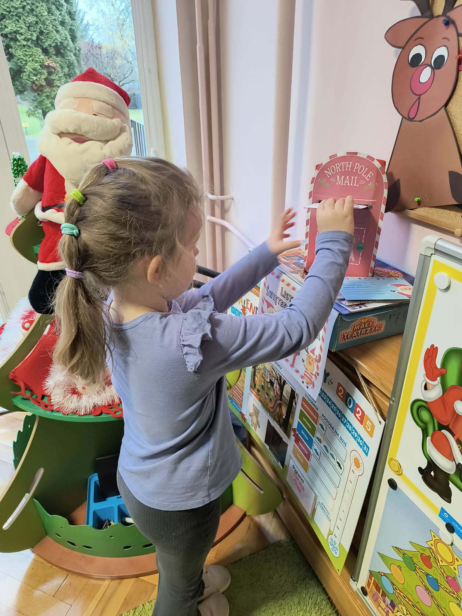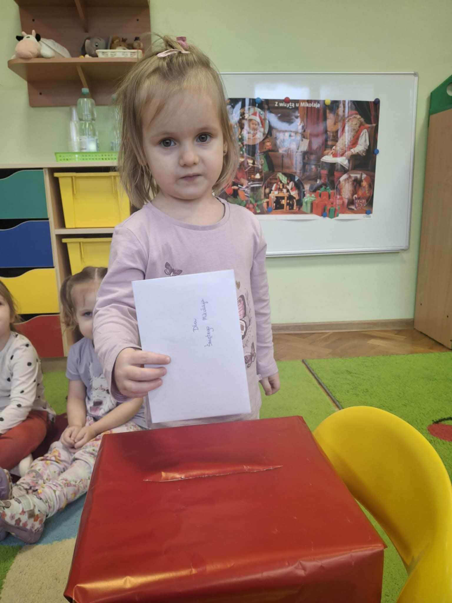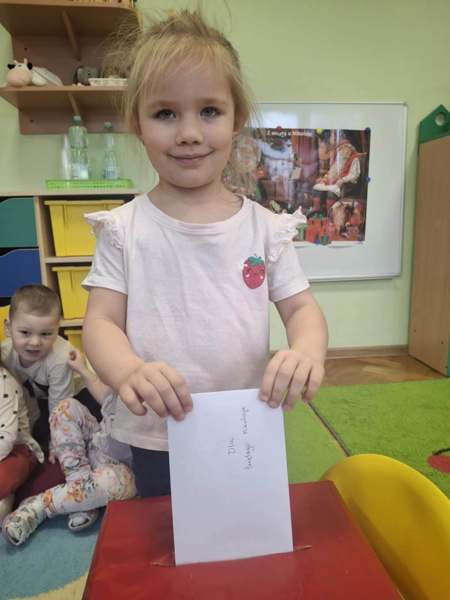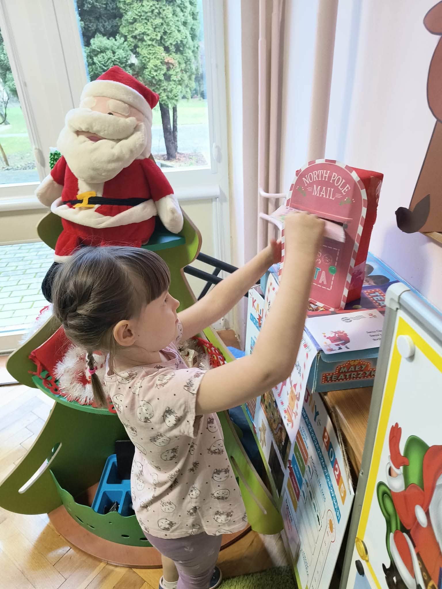 Podczas zajęć przedszkolaki opowiadały o swoich marzeniach, ćwiczyły formułowanie próśb w uprzejmej formie oraz tworzyły kolorowe, starannie ozdobione listy. Nie zabrakło rysunków, naklejek i własnoręcznie wykonanych dekoracji. Gotowe listy zostały uroczyście wrzucone do „Skrzynki Mikołajowej”, skąd – ku radości dzieci – miały wyruszyć prosto na Biegun Północny.