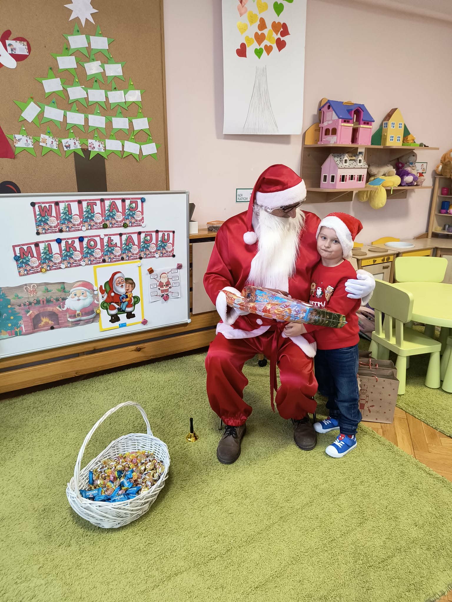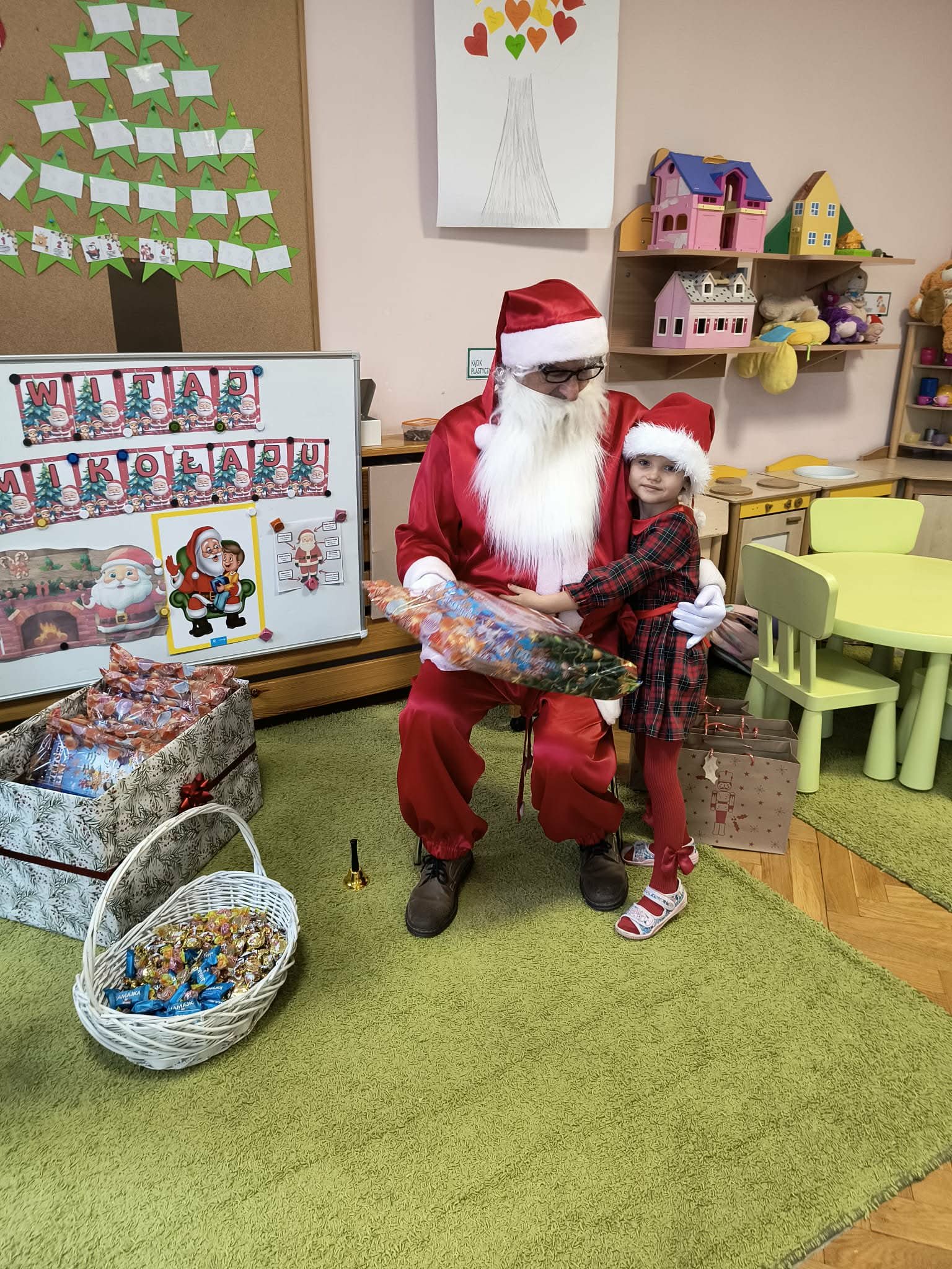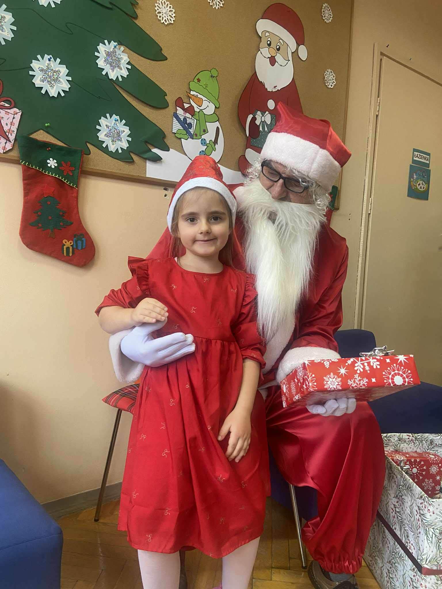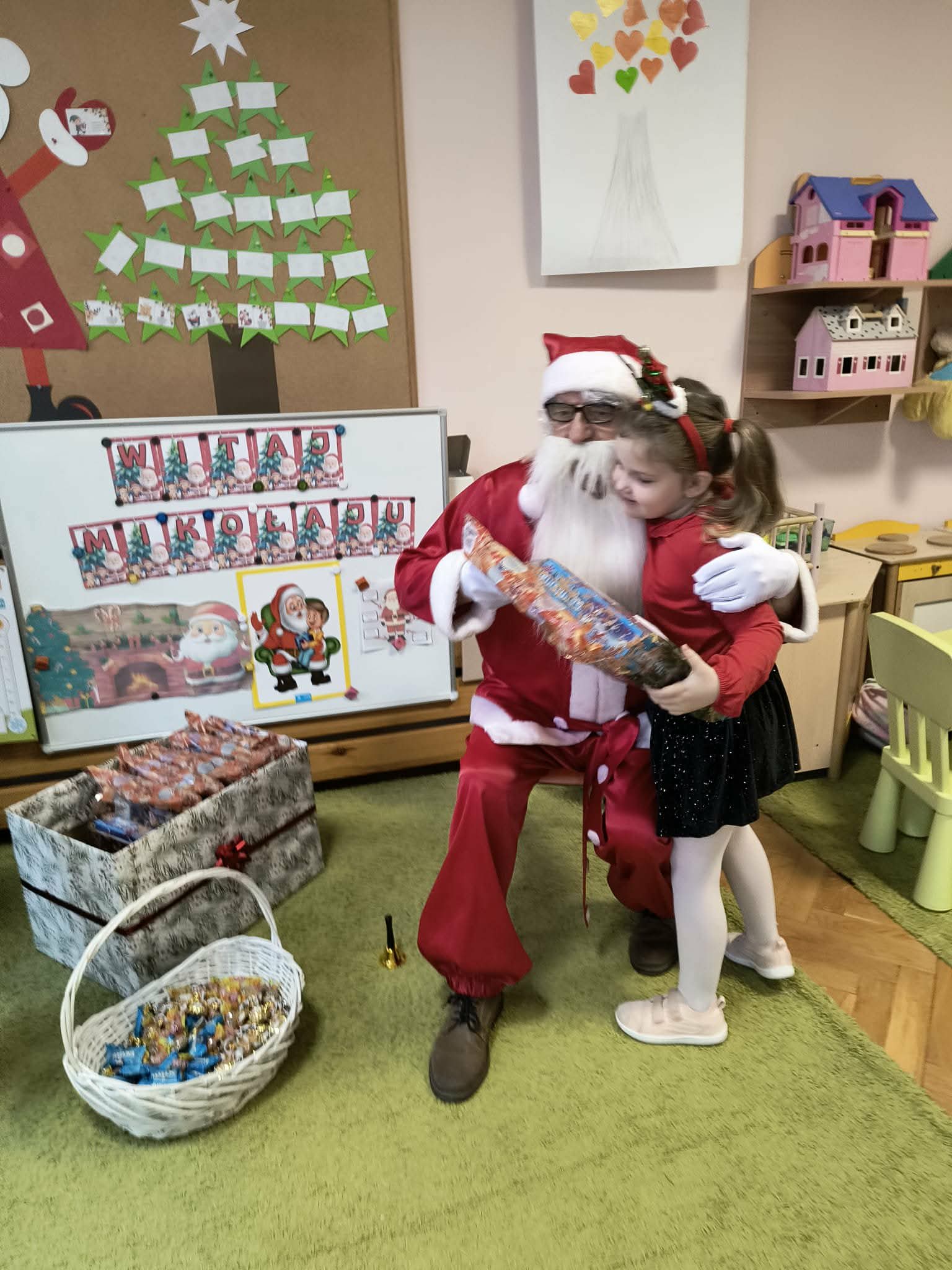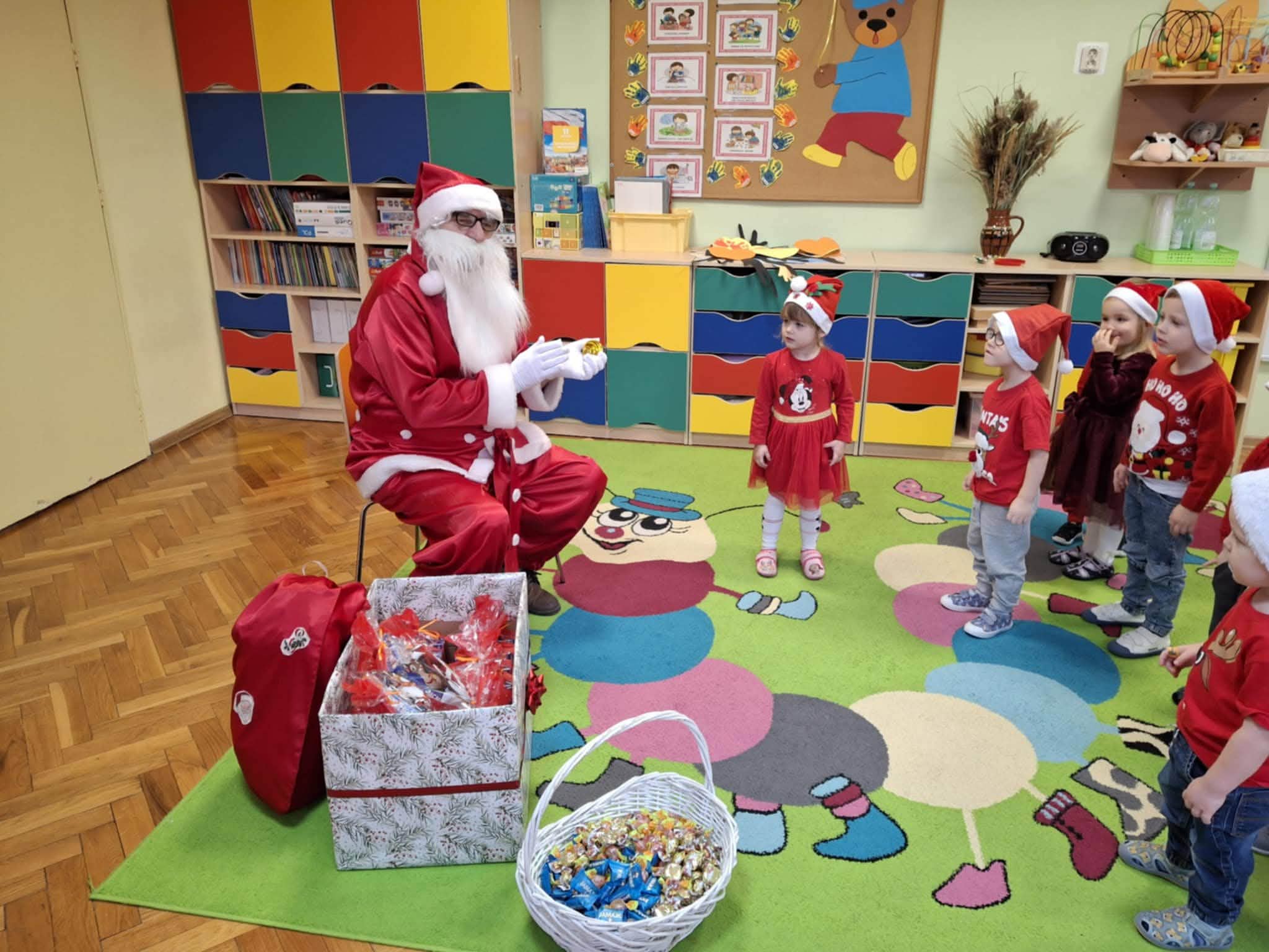 Kulminacją świątecznych przygotowań była wizyta Świętego Mikołaja, która odbyła się 5 grudnia. Przedszkole wypełniło się atmosferą radości, świątecznych dźwięków i ekscytacji. Dzieci z wielkim przejęciem oczekiwały na przybycie gościa. Gdy Mikołaj pojawił się w przedszkolu, powitały go przygotowanymi wcześniej piosenkami, które zaśpiewały z ogromnym entuzjazmem.