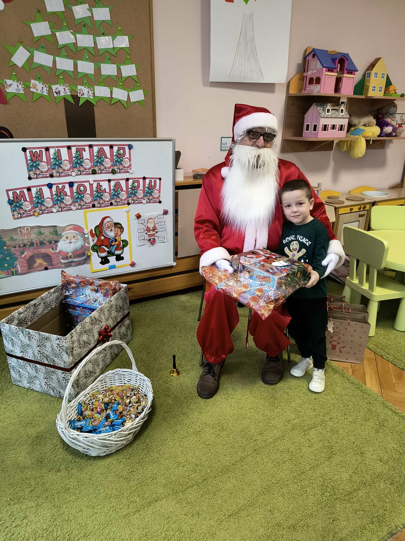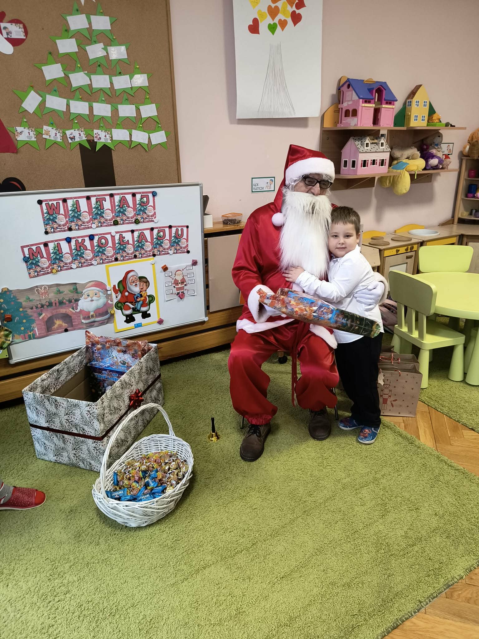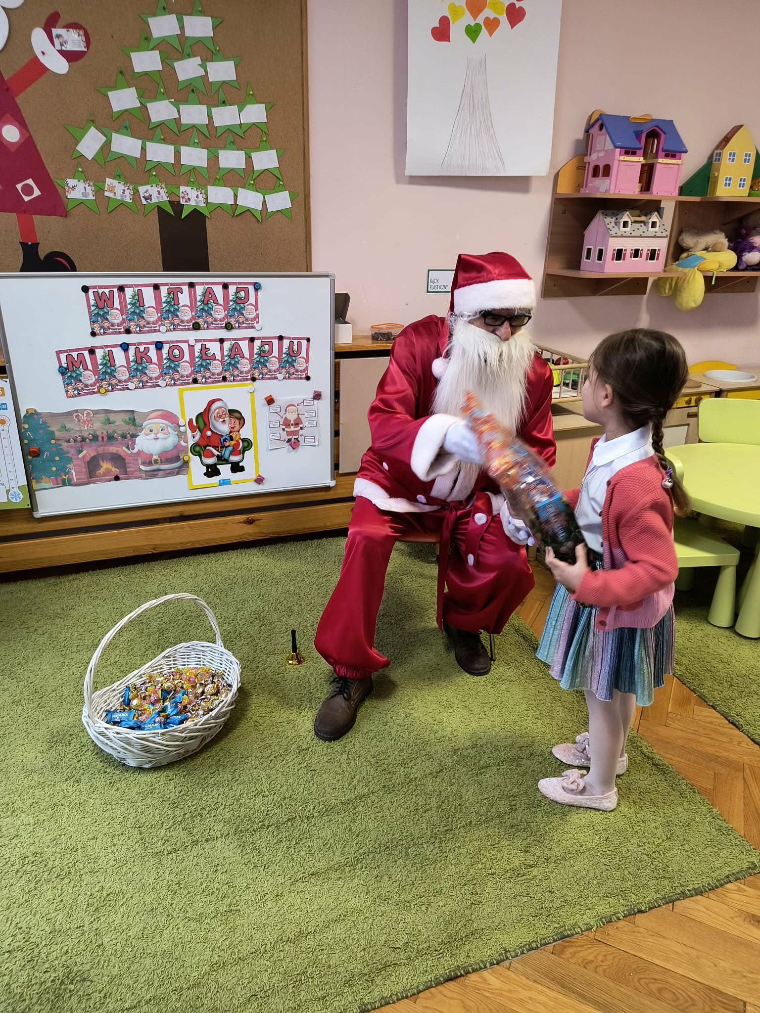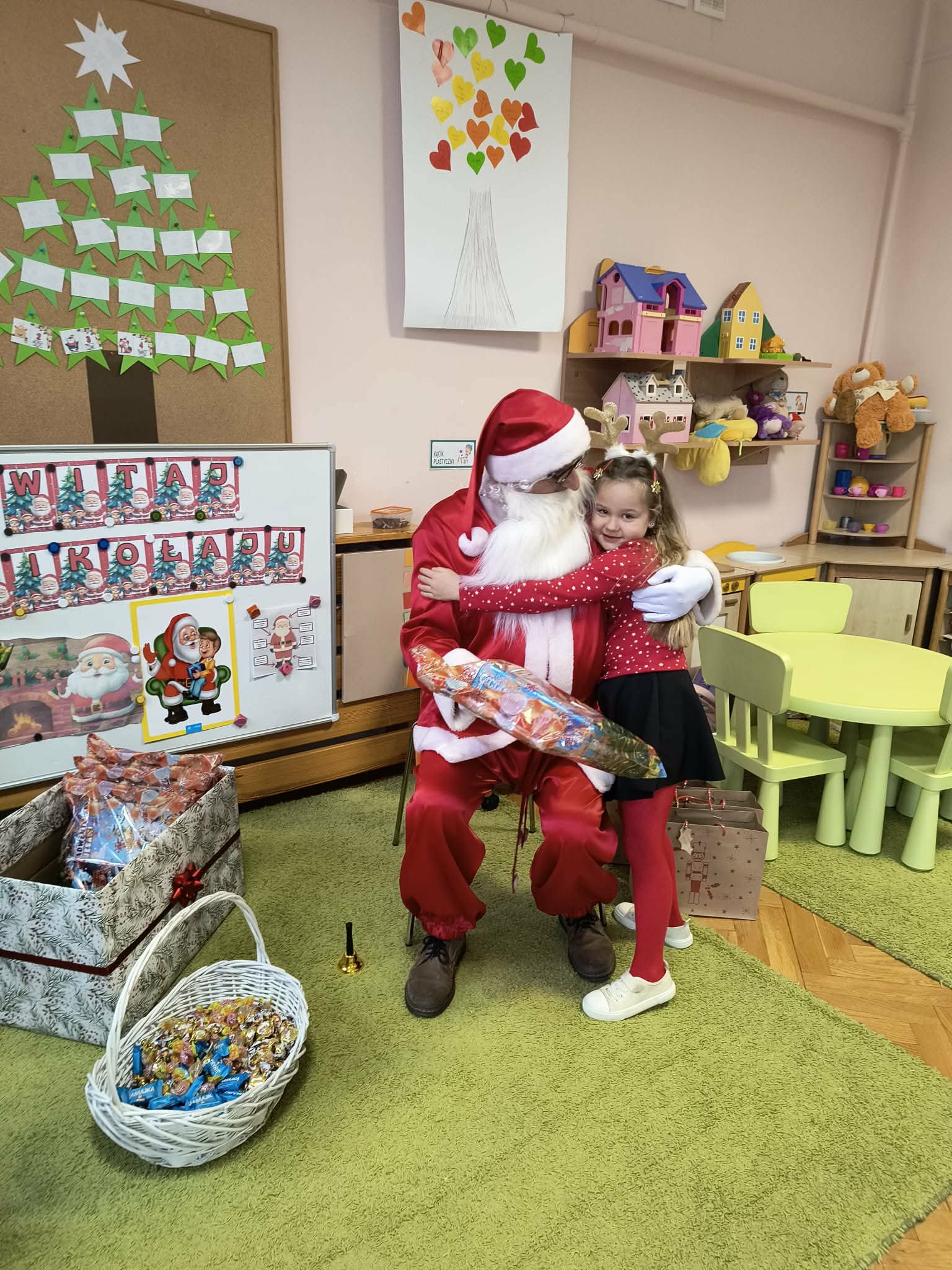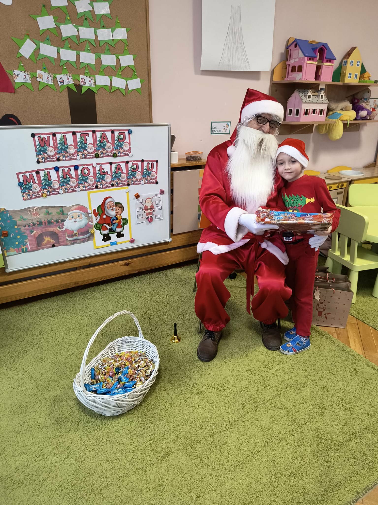 Kulminacją świątecznych przygotowań była wizyta Świętego Mikołaja, która odbyła się 5 grudnia. Przedszkole wypełniło się atmosferą radości, świątecznych dźwięków i ekscytacji. Dzieci z wielkim przejęciem oczekiwały na przybycie gościa. Gdy Mikołaj pojawił się w przedszkolu, powitały go przygotowanymi wcześniej piosenkami, które zaśpiewały z ogromnym entuzjazmem.