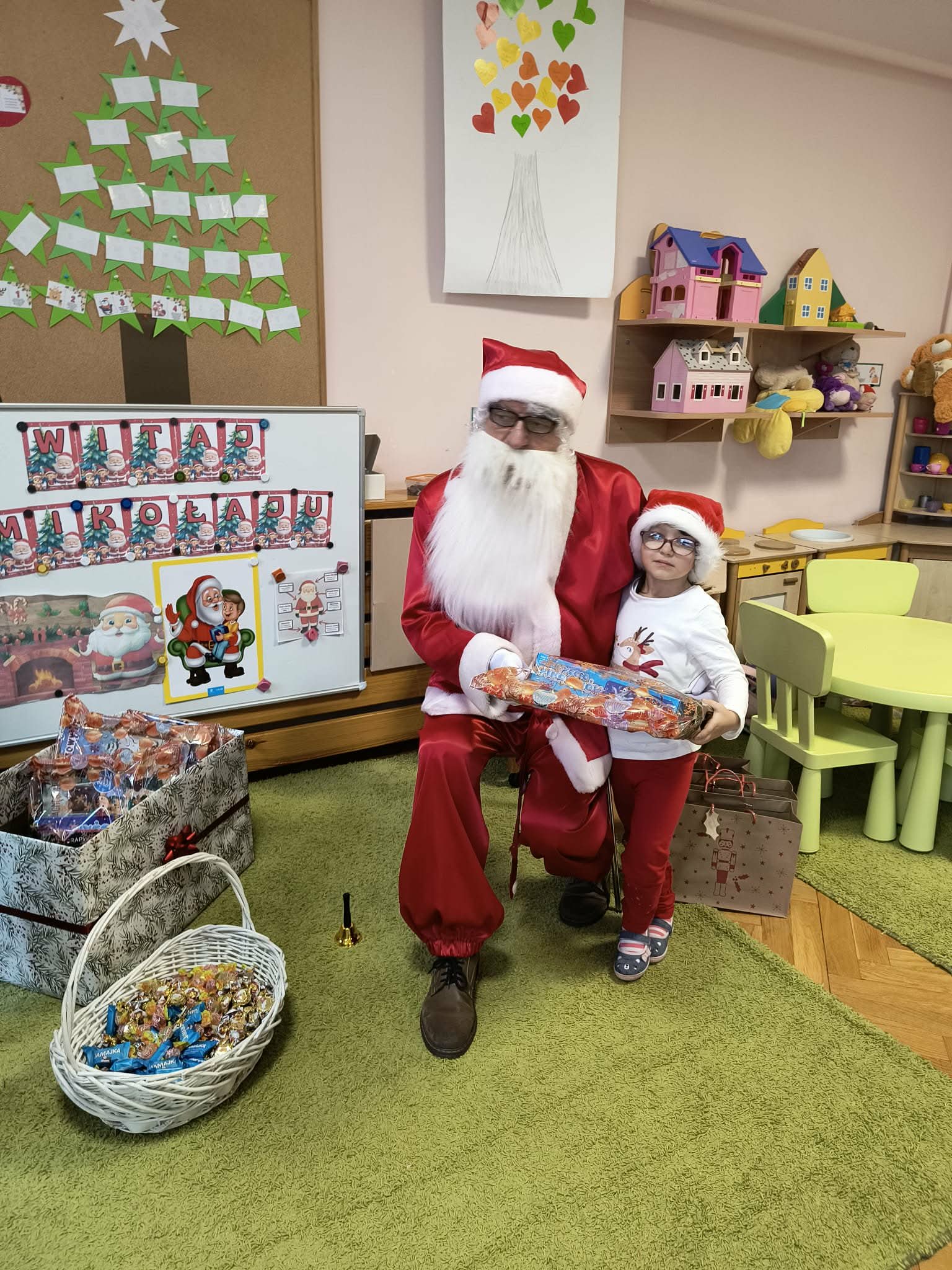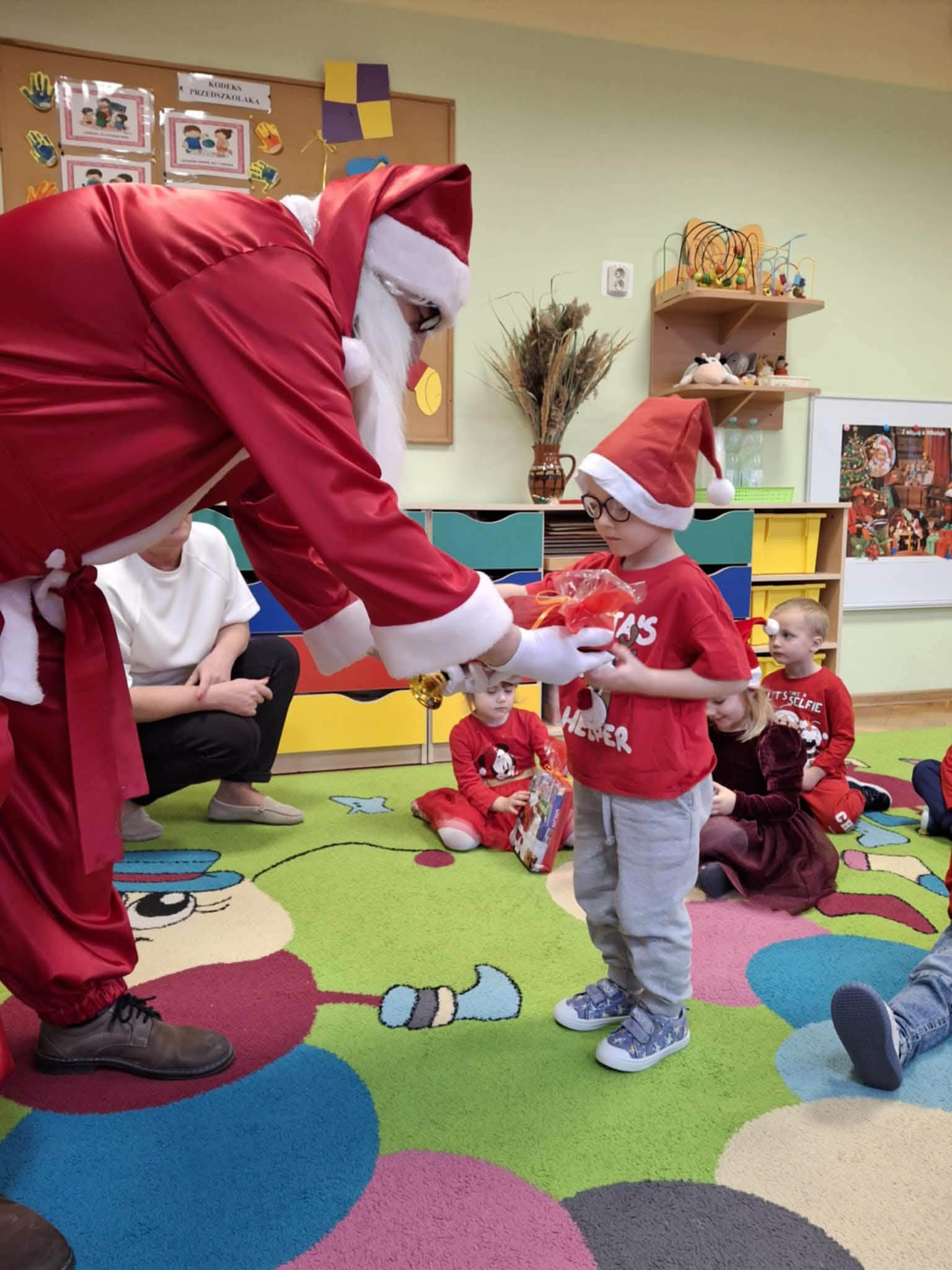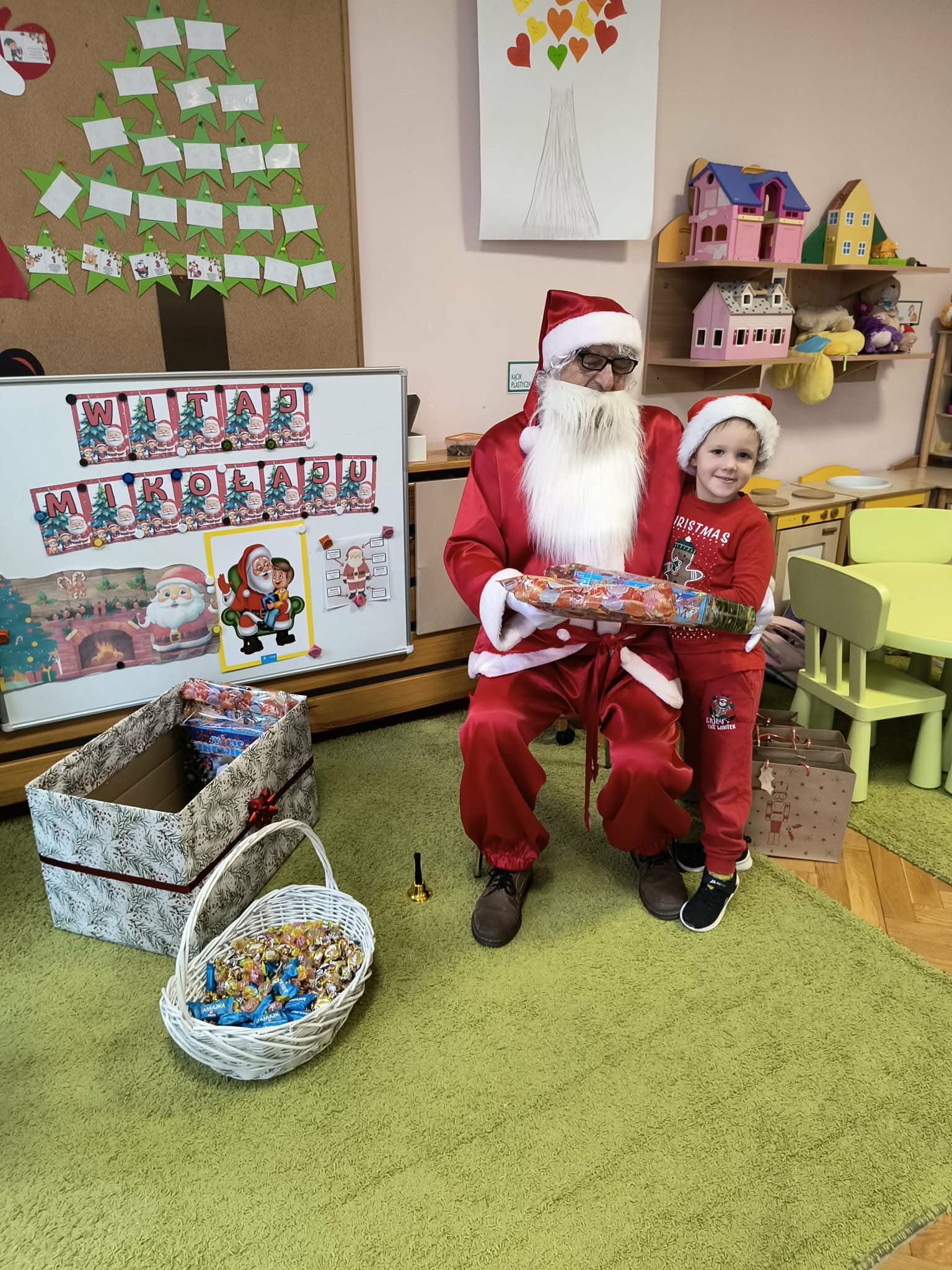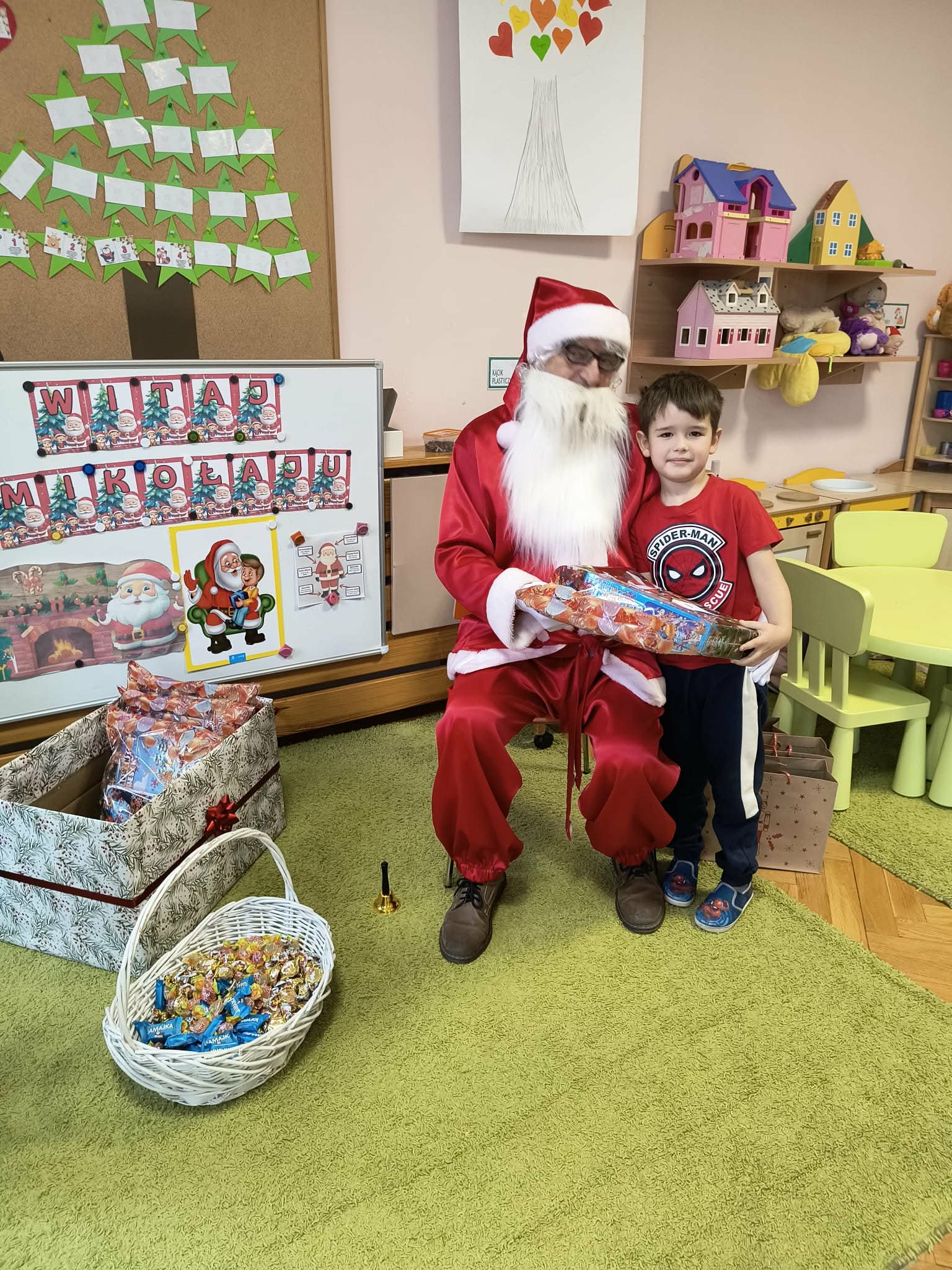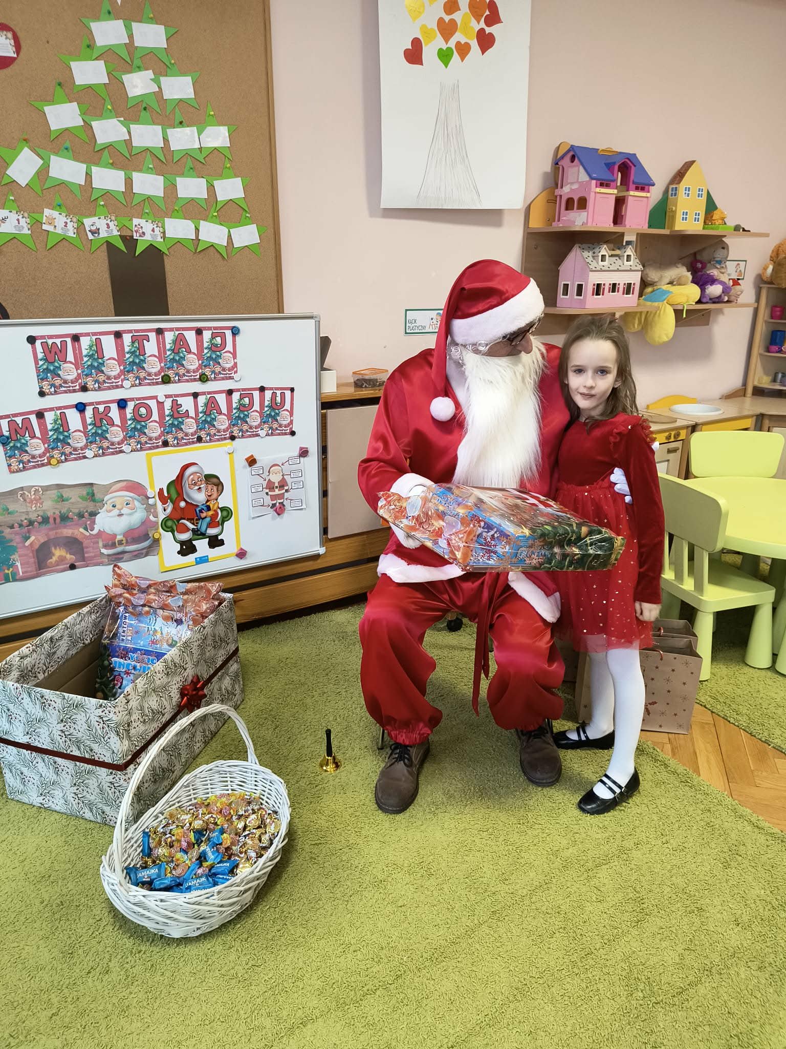 Kulminacją świątecznych przygotowań była wizyta Świętego Mikołaja, która odbyła się 5 grudnia. Przedszkole wypełniło się atmosferą radości, świątecznych dźwięków i ekscytacji. Dzieci z wielkim przejęciem oczekiwały na przybycie gościa. Gdy Mikołaj pojawił się w przedszkolu, powitały go przygotowanymi wcześniej piosenkami, które zaśpiewały z ogromnym entuzjazmem.