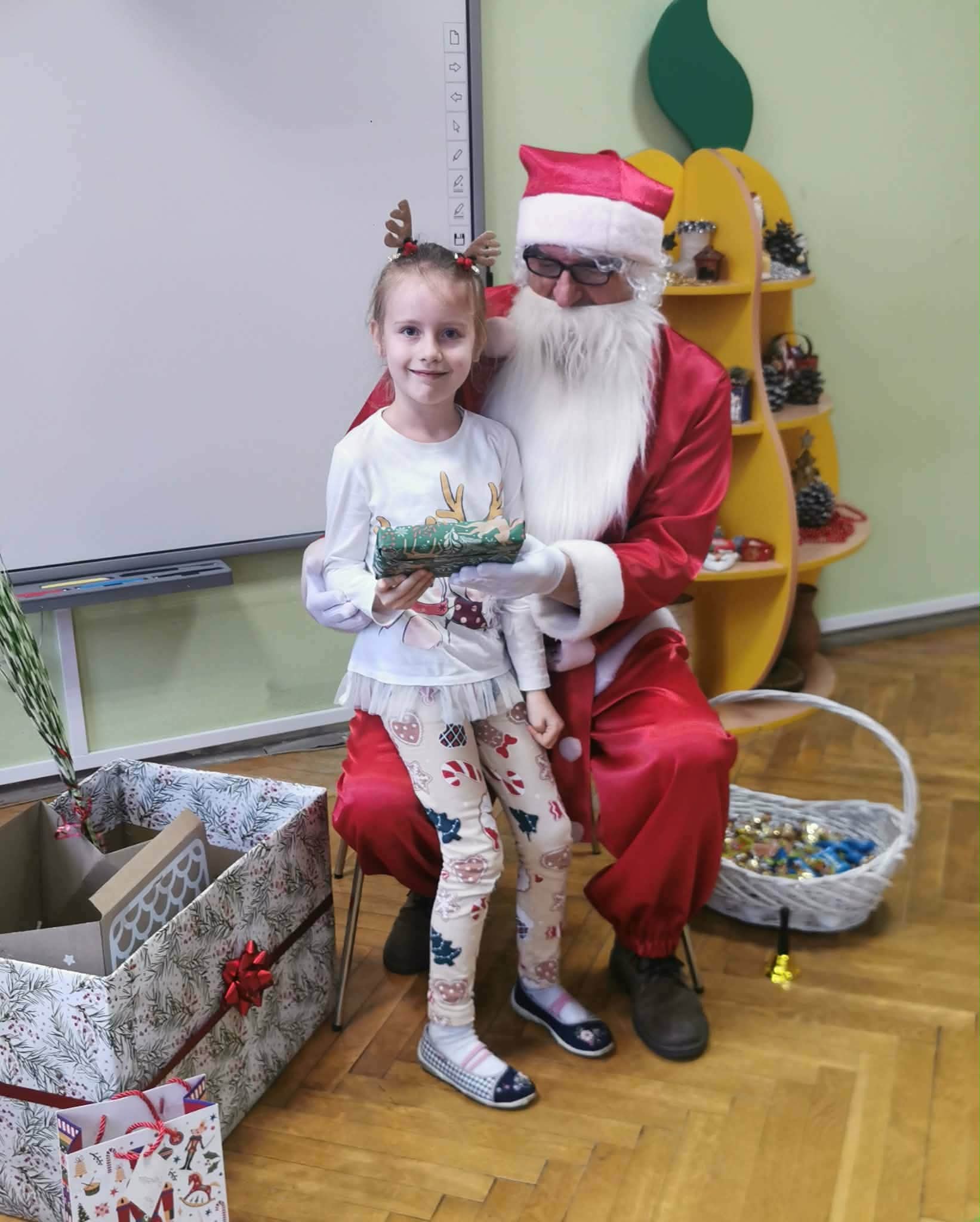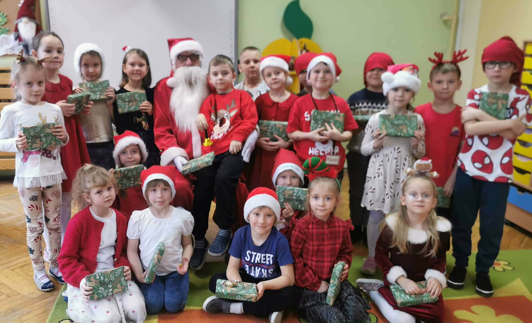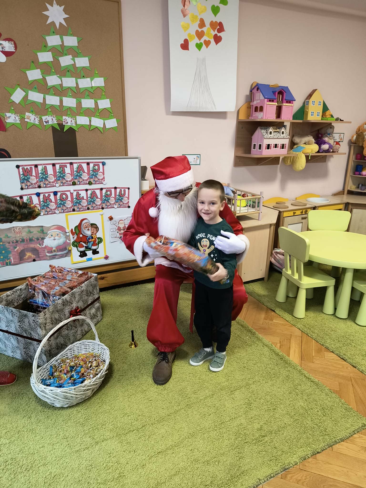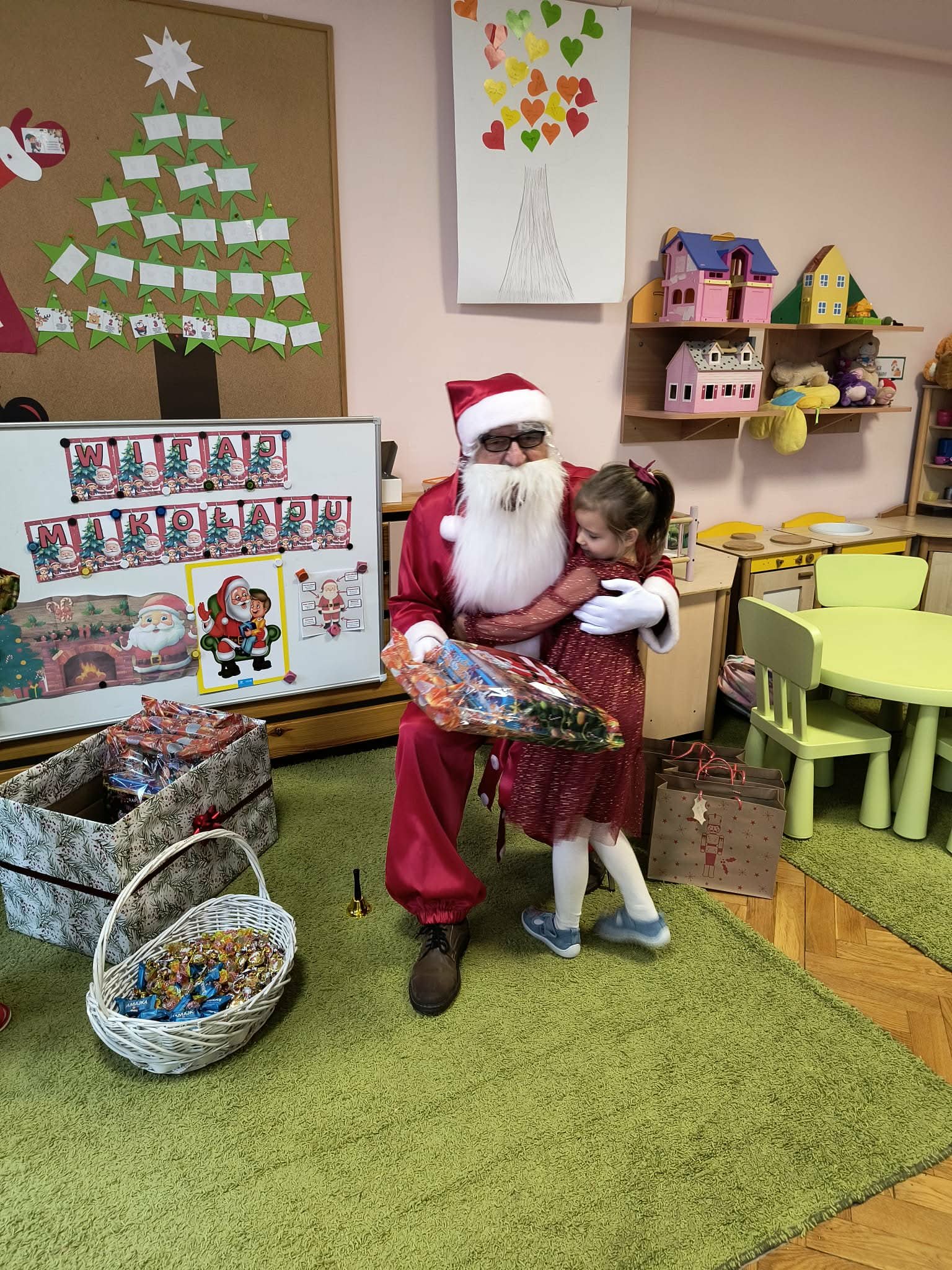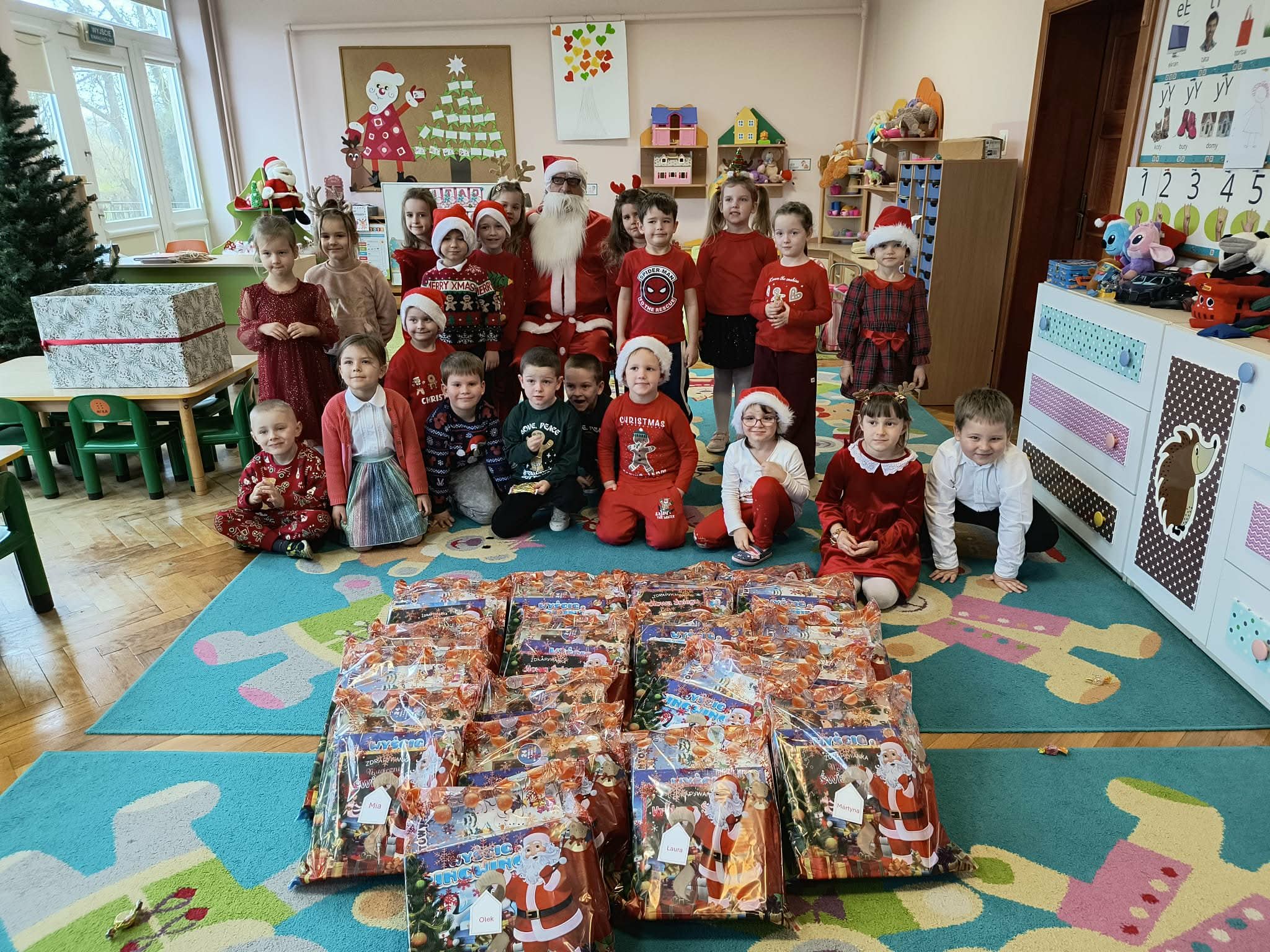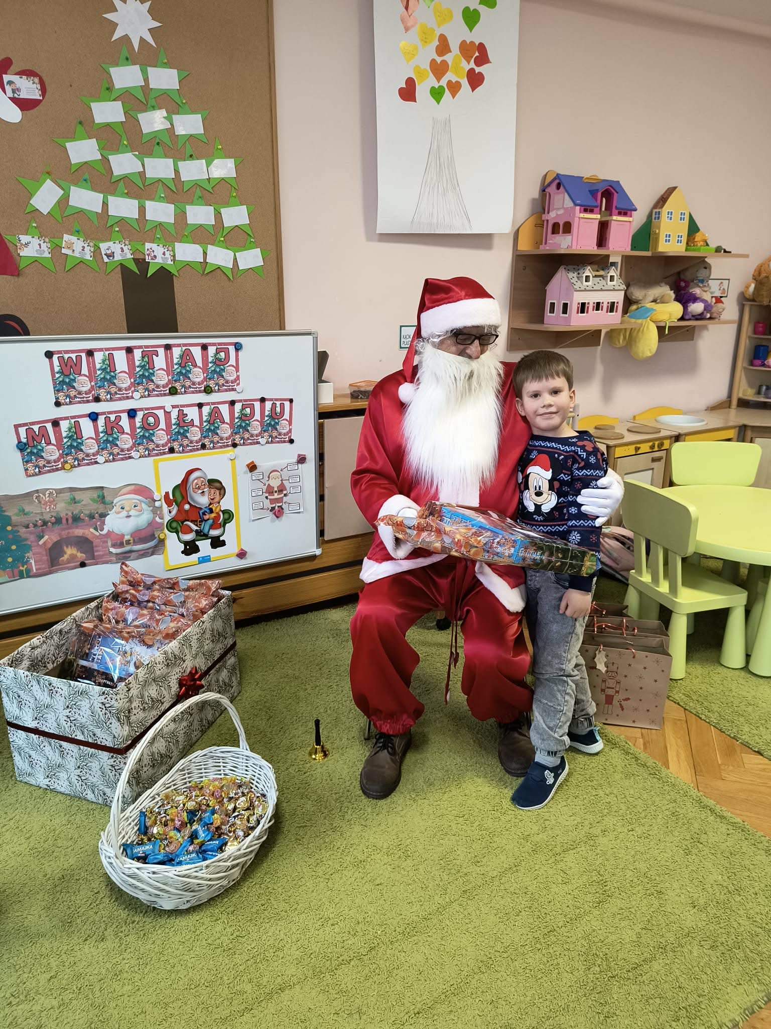 Kulminacją świątecznych przygotowań była wizyta Świętego Mikołaja, która odbyła się 5 grudnia. Przedszkole wypełniło się atmosferą radości, świątecznych dźwięków i ekscytacji. Dzieci z wielkim przejęciem oczekiwały na przybycie gościa. Gdy Mikołaj pojawił się w przedszkolu, powitały go przygotowanymi wcześniej piosenkami, które zaśpiewały z ogromnym entuzjazmem.