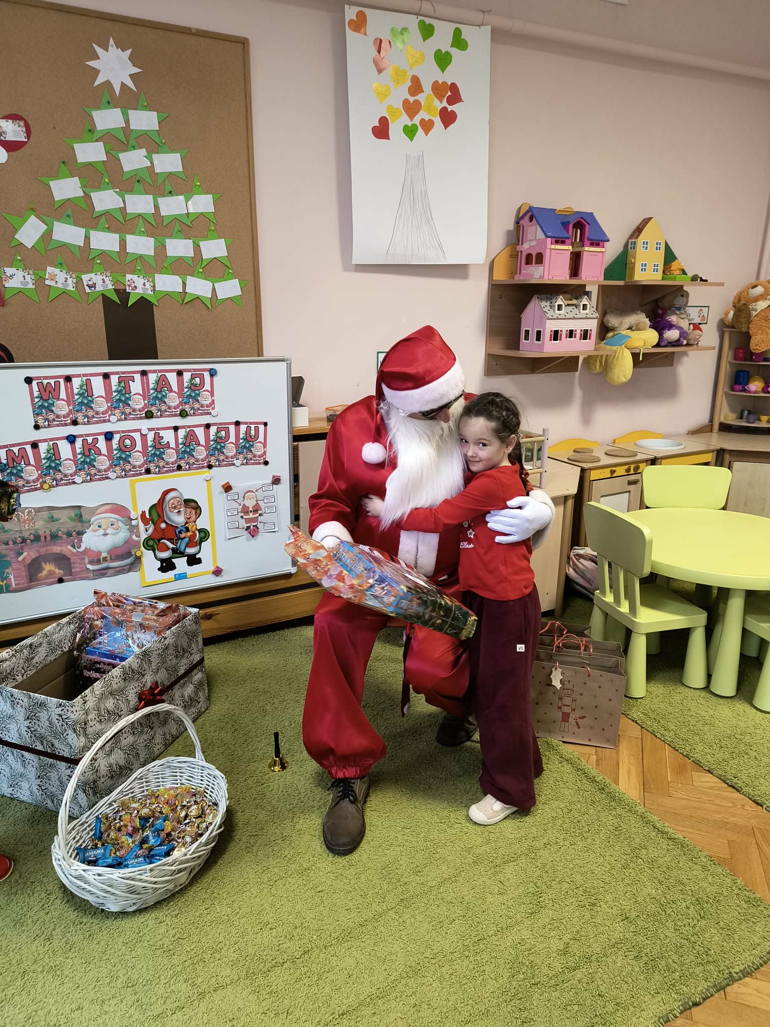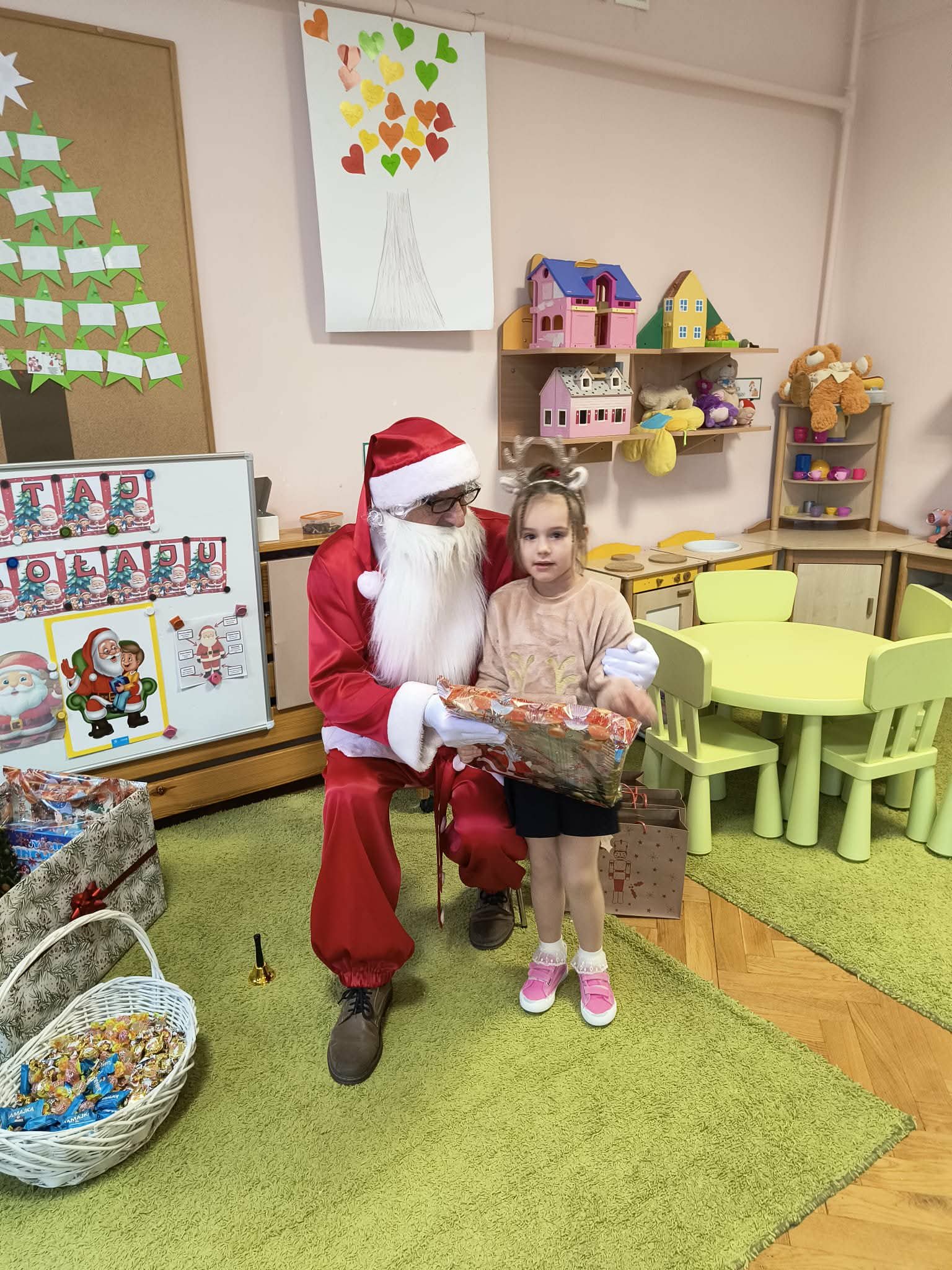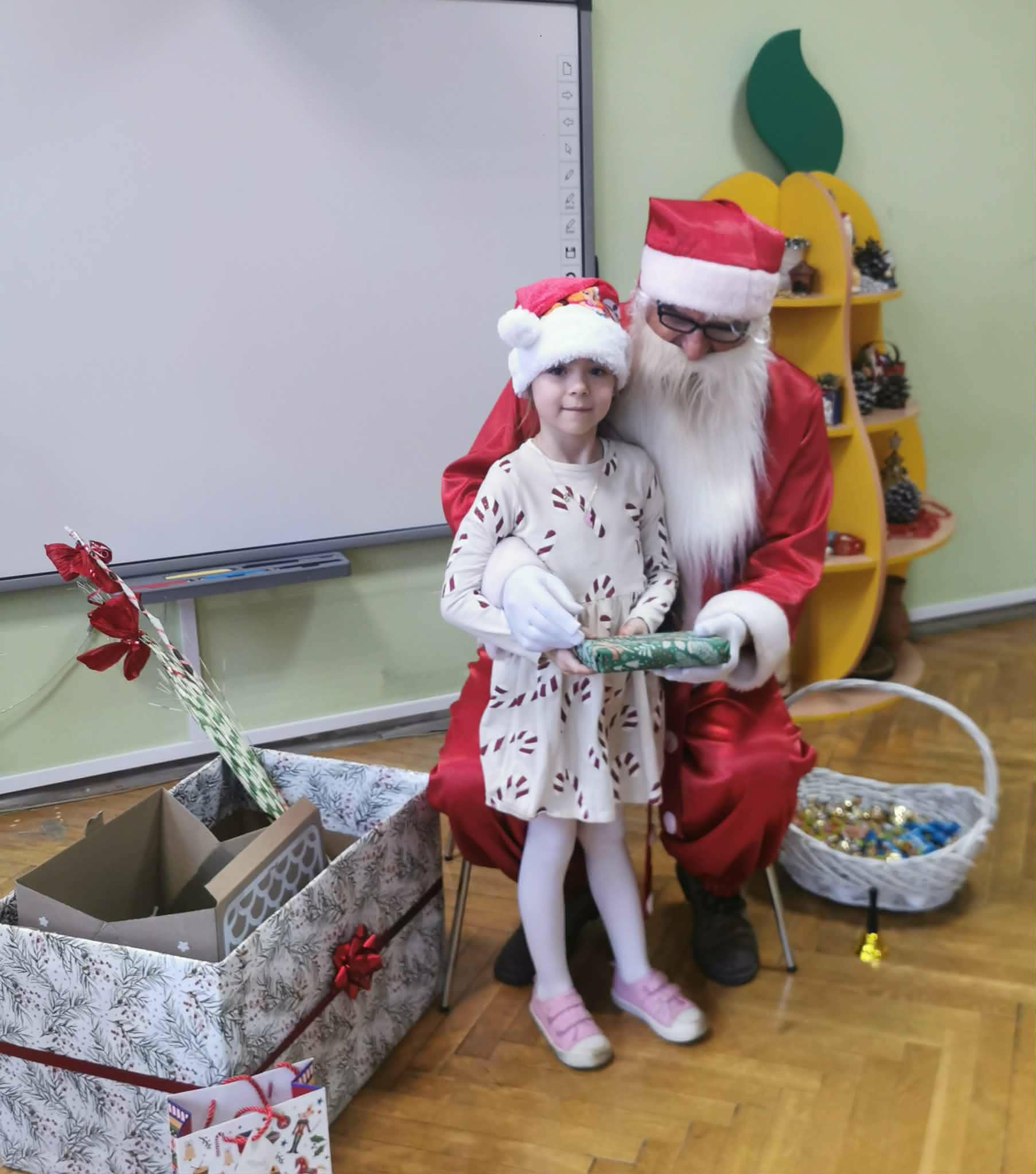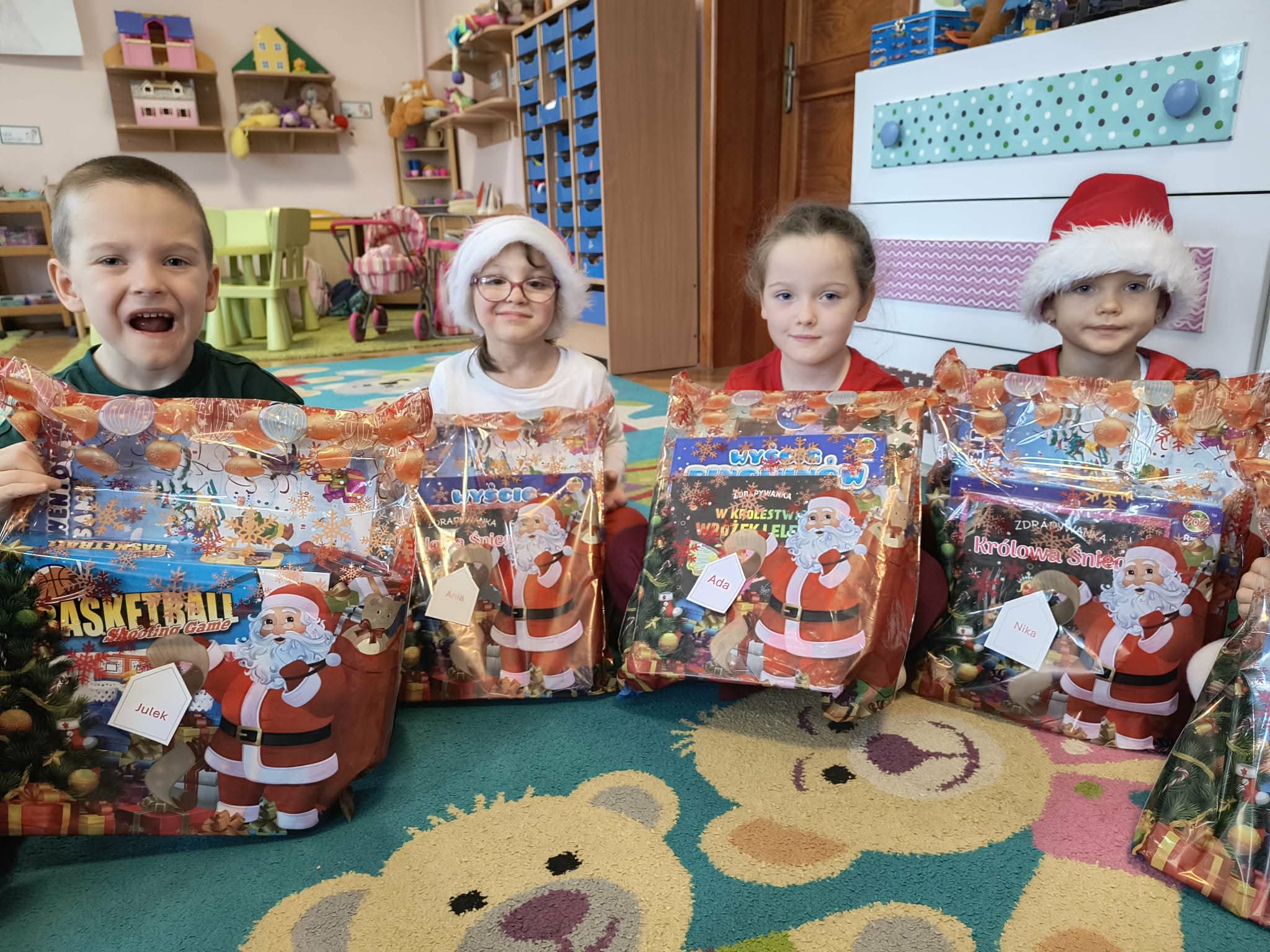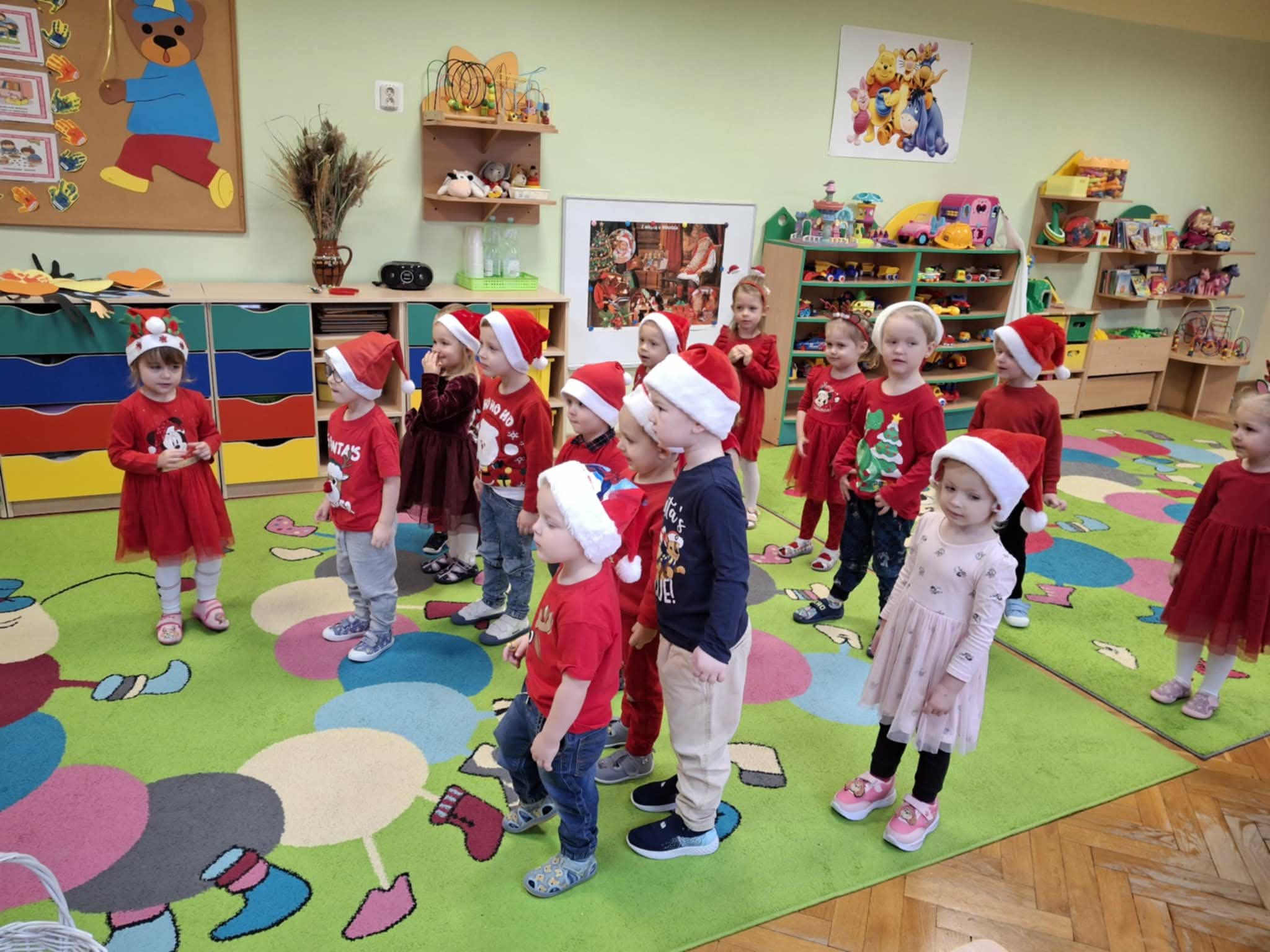 Kulminacją świątecznych przygotowań była wizyta Świętego Mikołaja, która odbyła się 5 grudnia. Przedszkole wypełniło się atmosferą radości, świątecznych dźwięków i ekscytacji. Dzieci z wielkim przejęciem oczekiwały na przybycie gościa. Gdy Mikołaj pojawił się w przedszkolu, powitały go przygotowanymi wcześniej piosenkami, które zaśpiewały z ogromnym entuzjazmem.