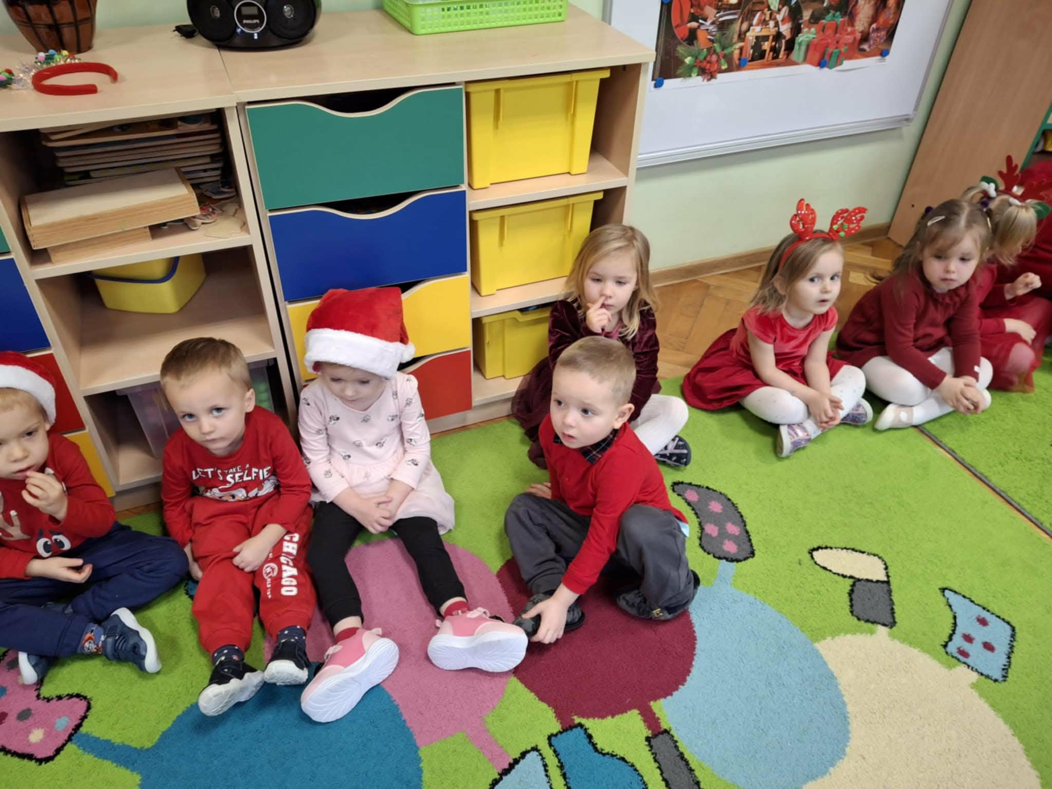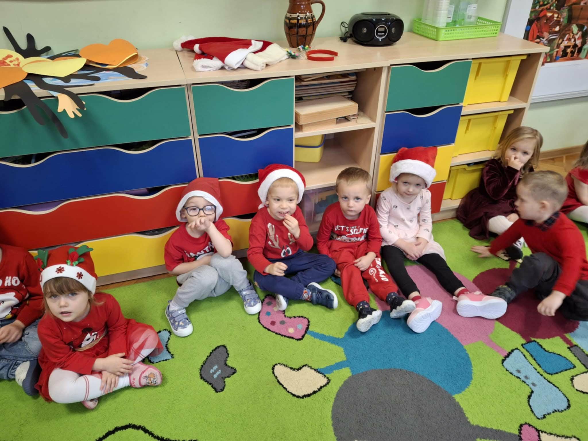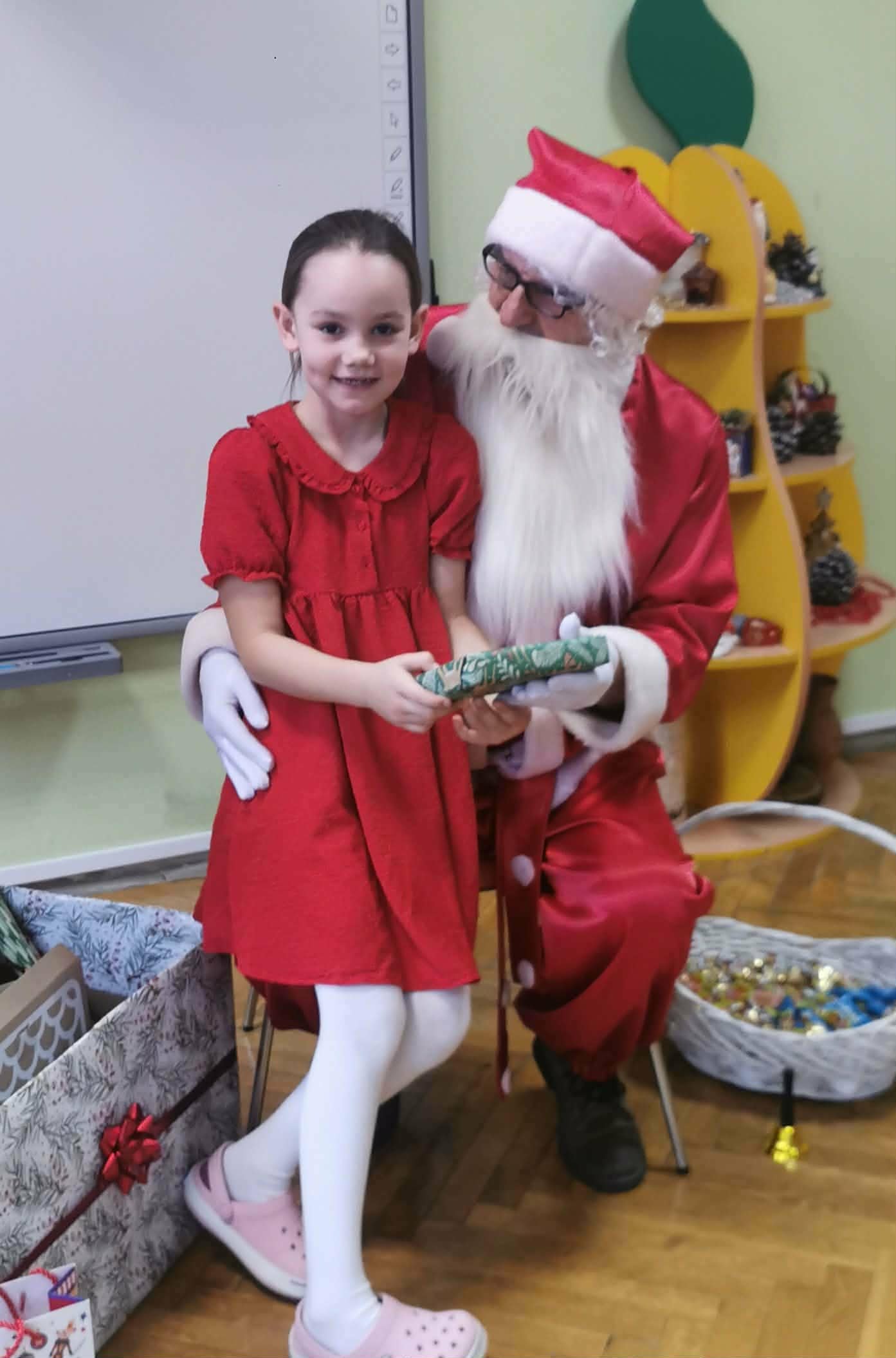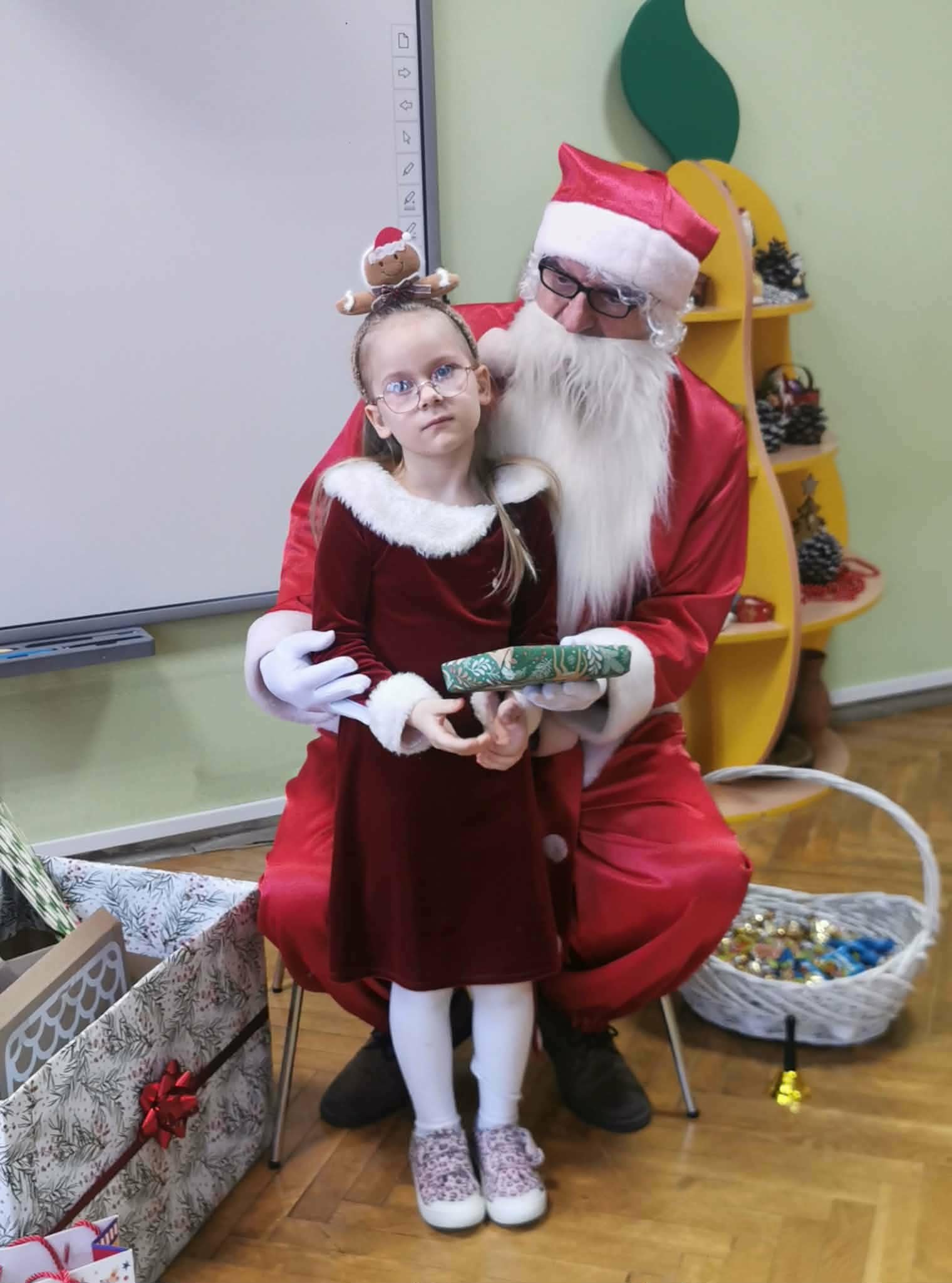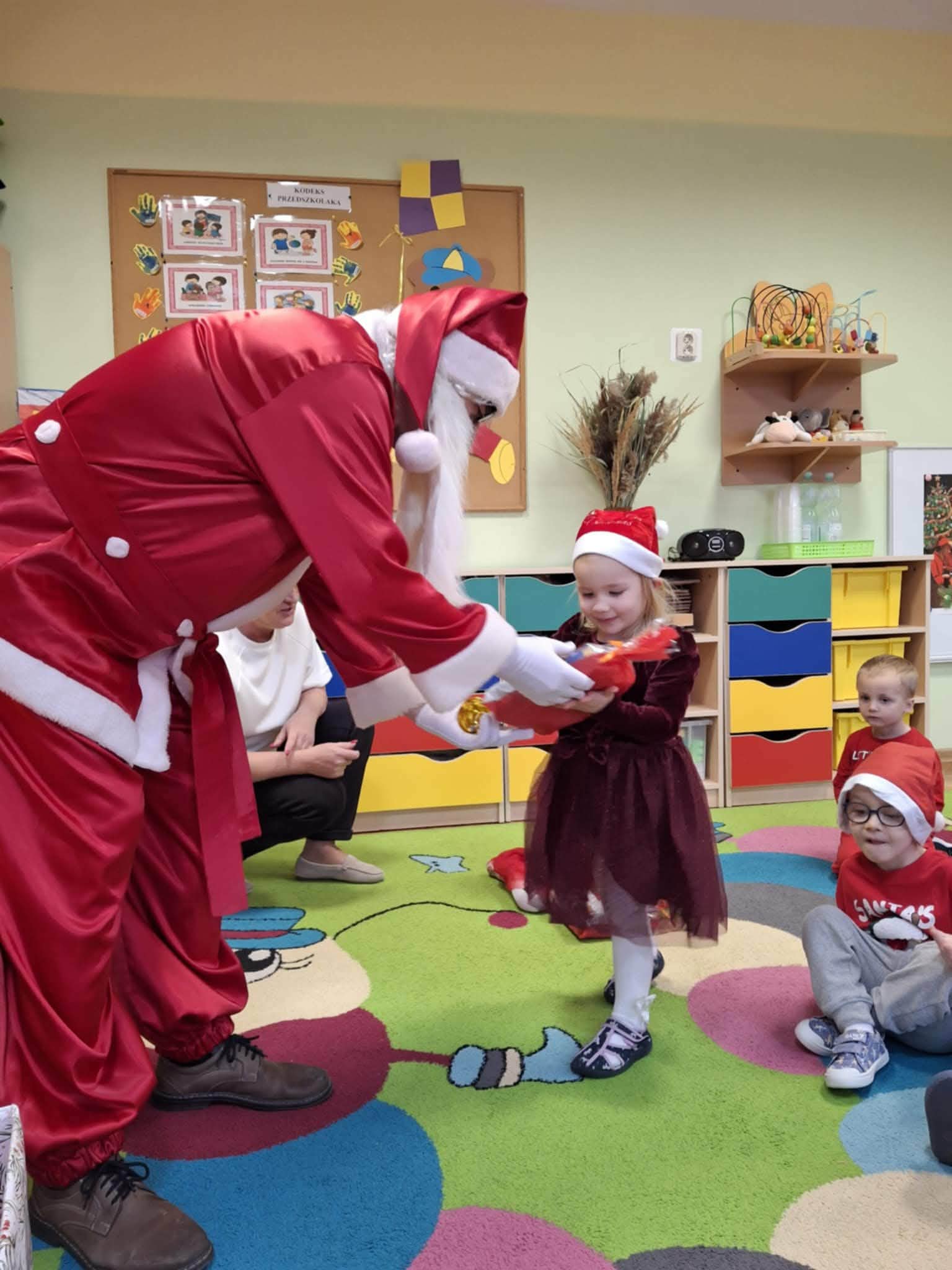 Kulminacją świątecznych przygotowań była wizyta Świętego Mikołaja, która odbyła się 5 grudnia. Przedszkole wypełniło się atmosferą radości, świątecznych dźwięków i ekscytacji. Dzieci z wielkim przejęciem oczekiwały na przybycie gościa. Gdy Mikołaj pojawił się w przedszkolu, powitały go przygotowanymi wcześniej piosenkami, które zaśpiewały z ogromnym entuzjazmem.