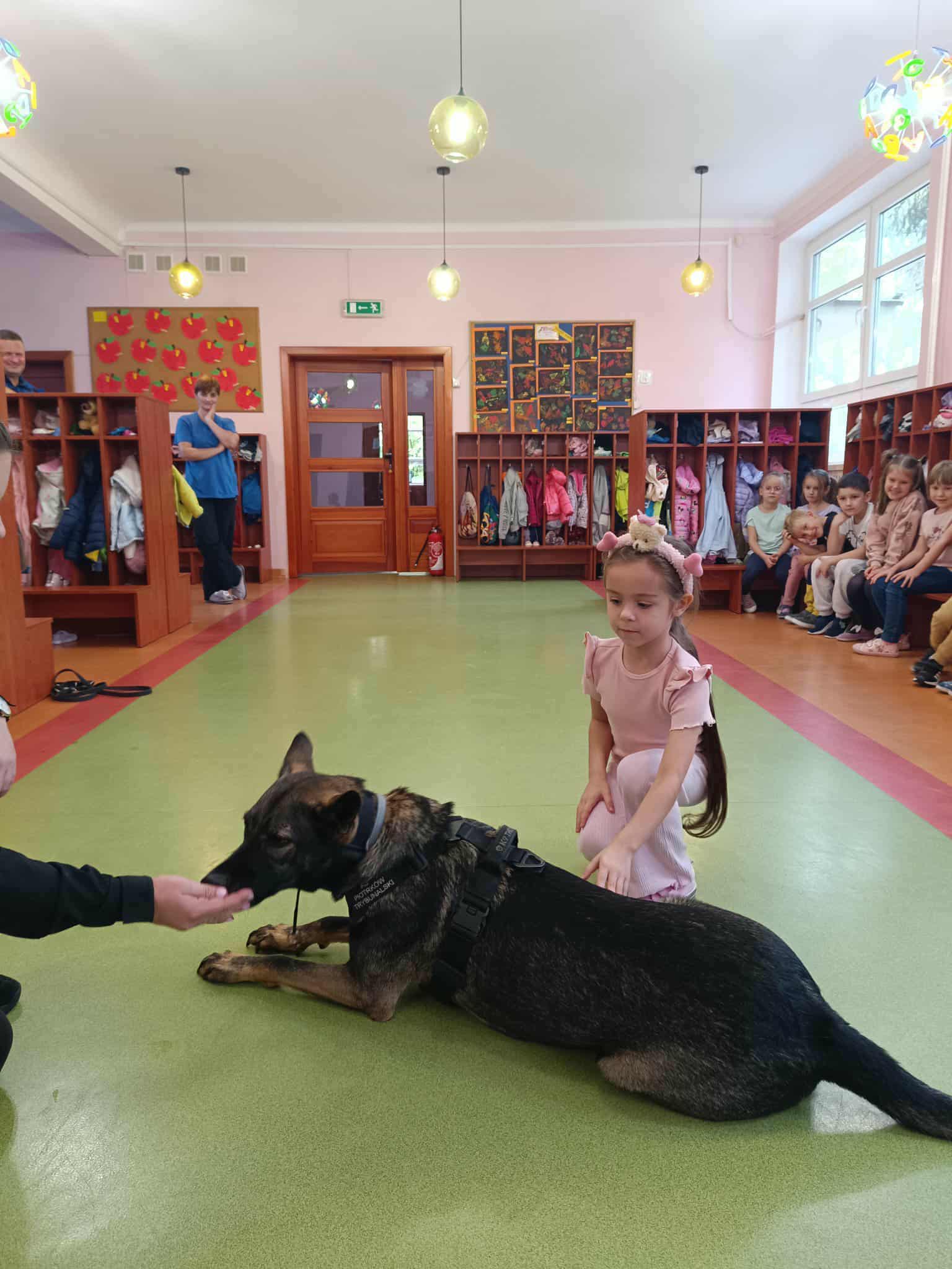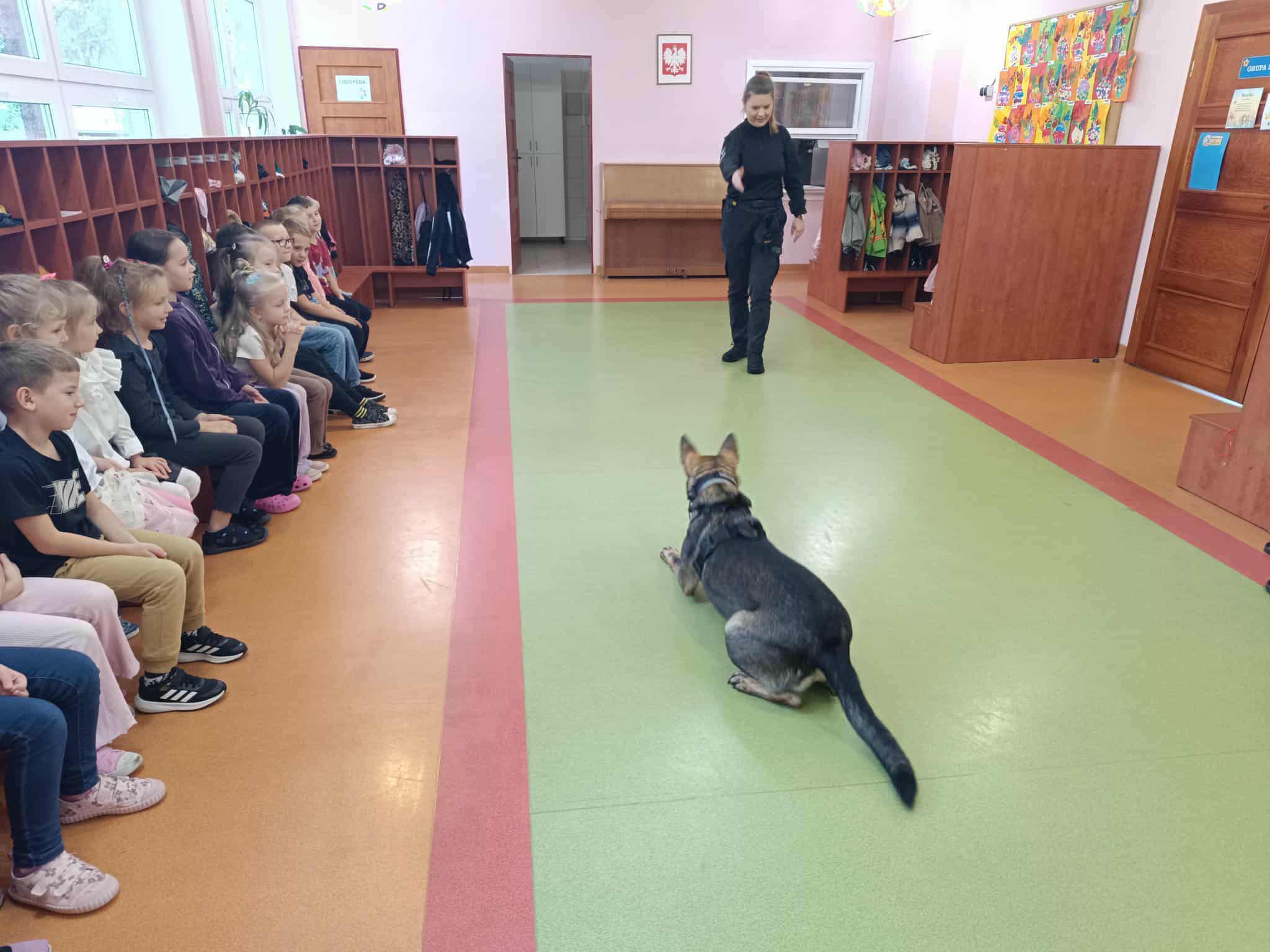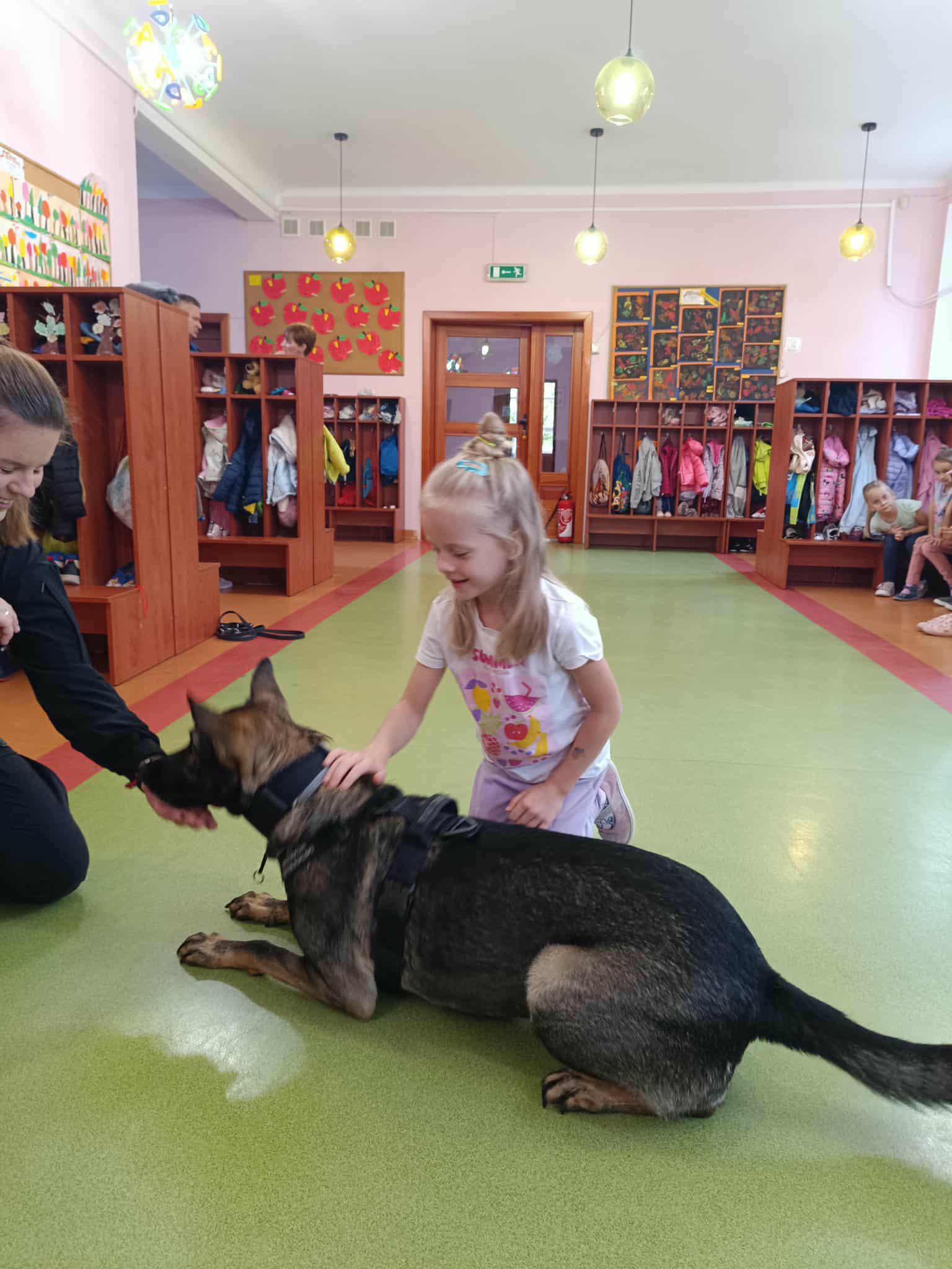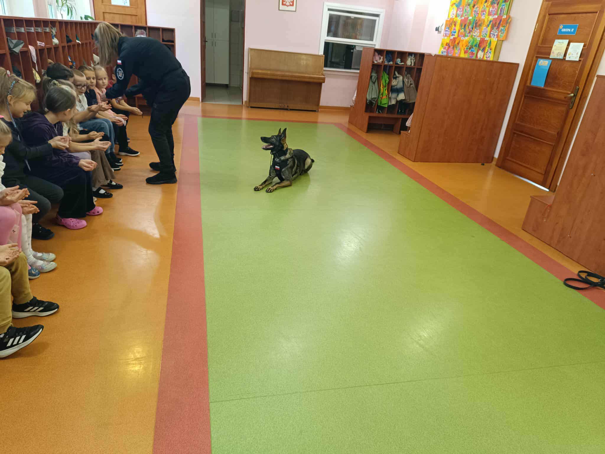 Największą atrakcją była oczywiście prezentacja umiejętności psa – dzieci mogły zobaczyć, jak wykonuje komendy, tropi zapachy i współpracuje ze swoim opiekunem. Spotkanie odbyło się w bezpiecznych warunkach, a pies był łagodny i przyjaźnie nastawiony do najmłodszych. W galerii poniżej znajdują się zdjęcia dzieci biorących udział w tym wydarzeniu.