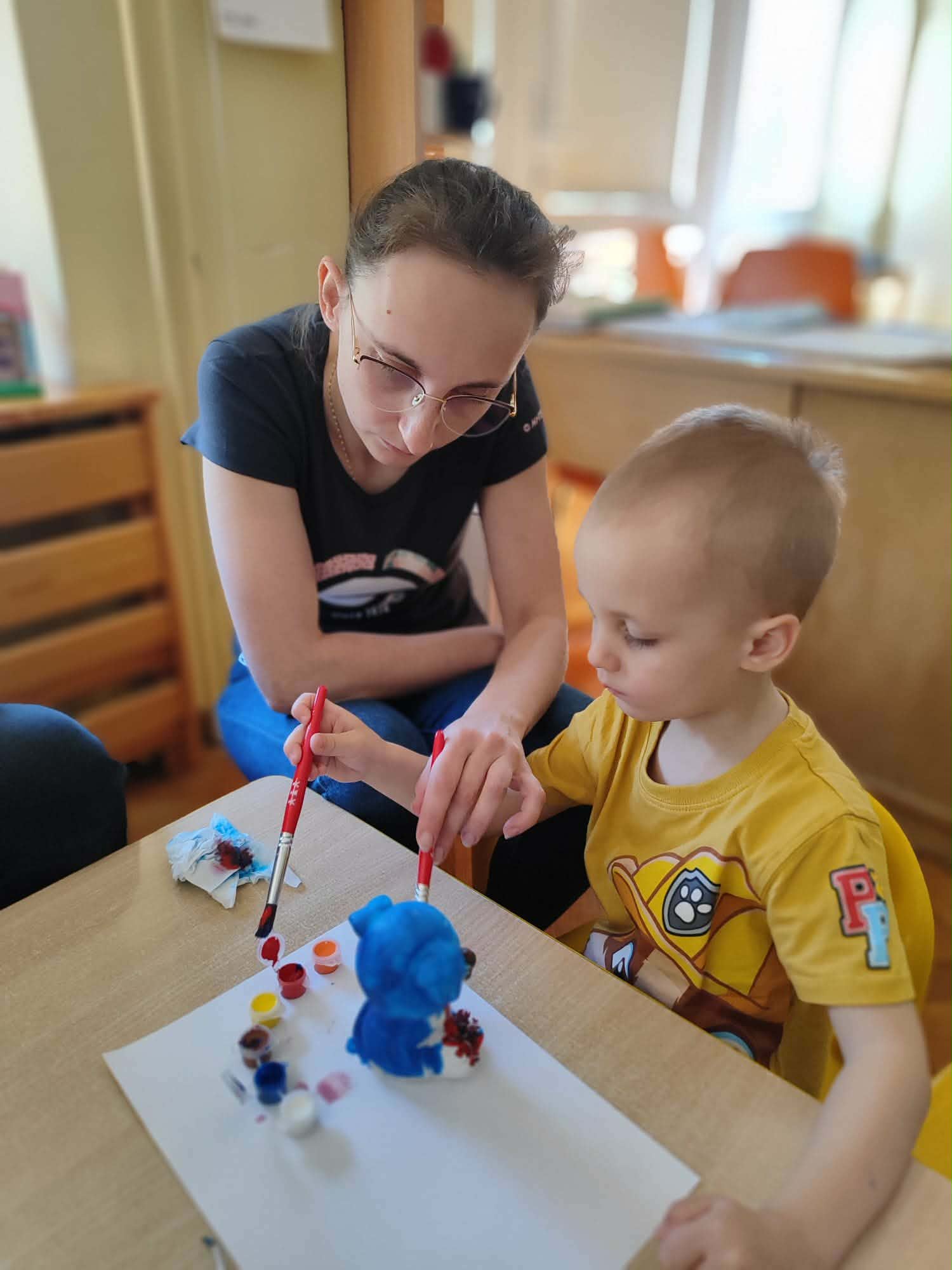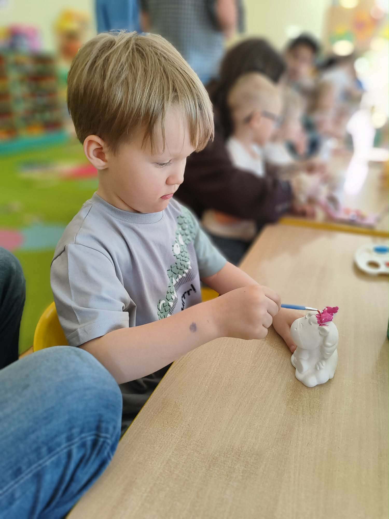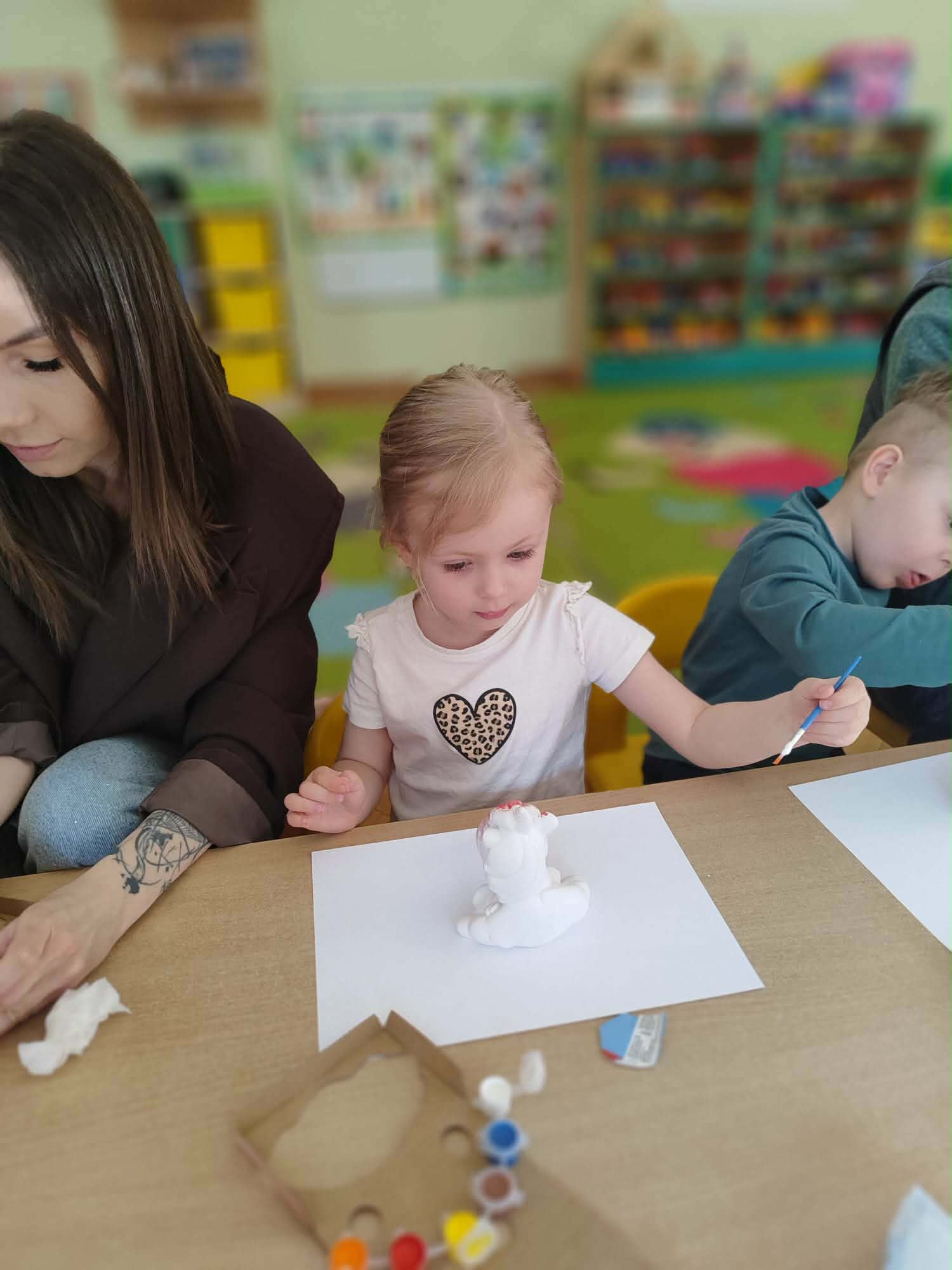 Kolejnym punktem spotkania było wspólne malowanie glinianych figurek. Ta część zajęć pozwoliła na rozwijanie kreatywności, a także dała okazję do twórczej współpracy i spędzenia czasu w miłej atmosferze.