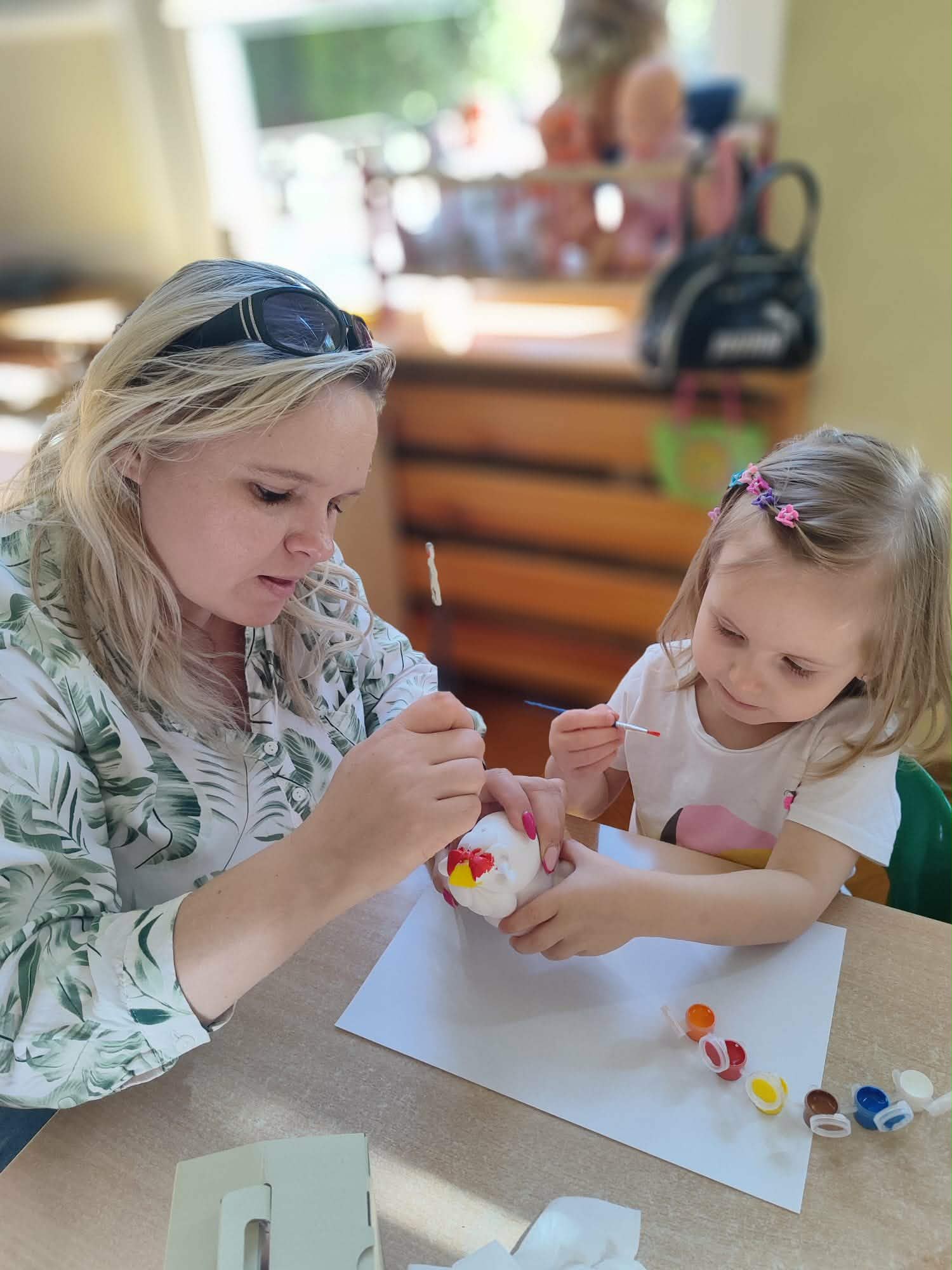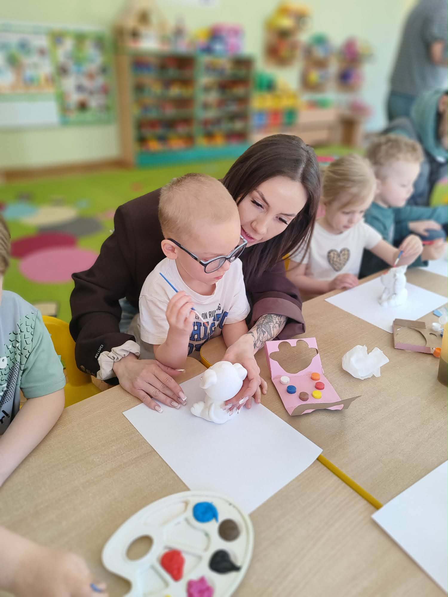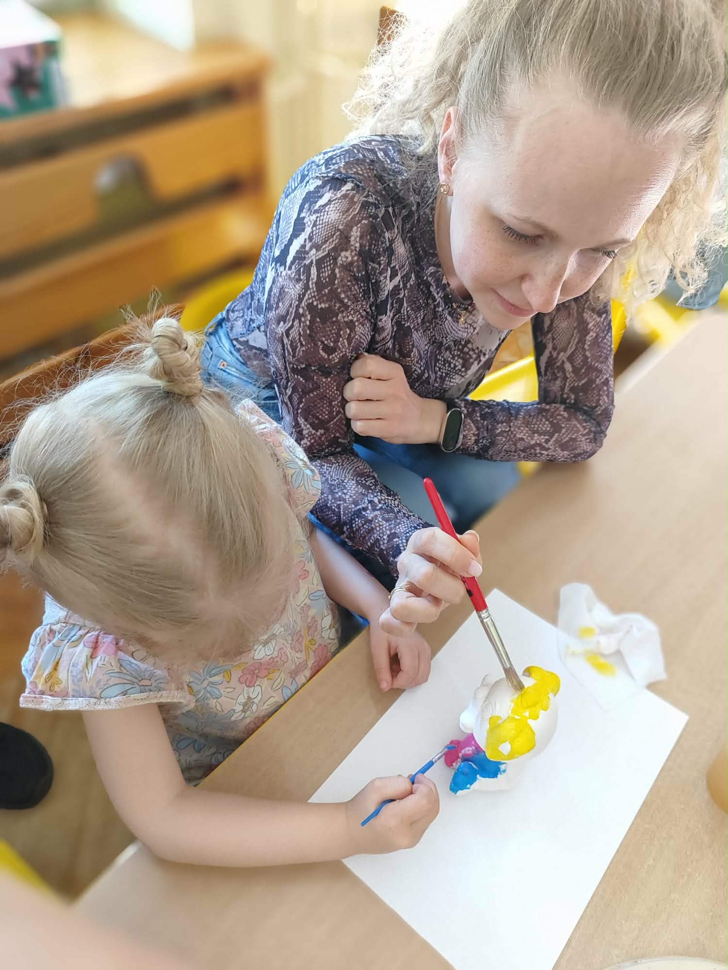 Kolejnym punktem spotkania było wspólne malowanie glinianych figurek. Ta część zajęć pozwoliła na rozwijanie kreatywności, a także dała okazję do twórczej współpracy i spędzenia czasu w miłej atmosferze.