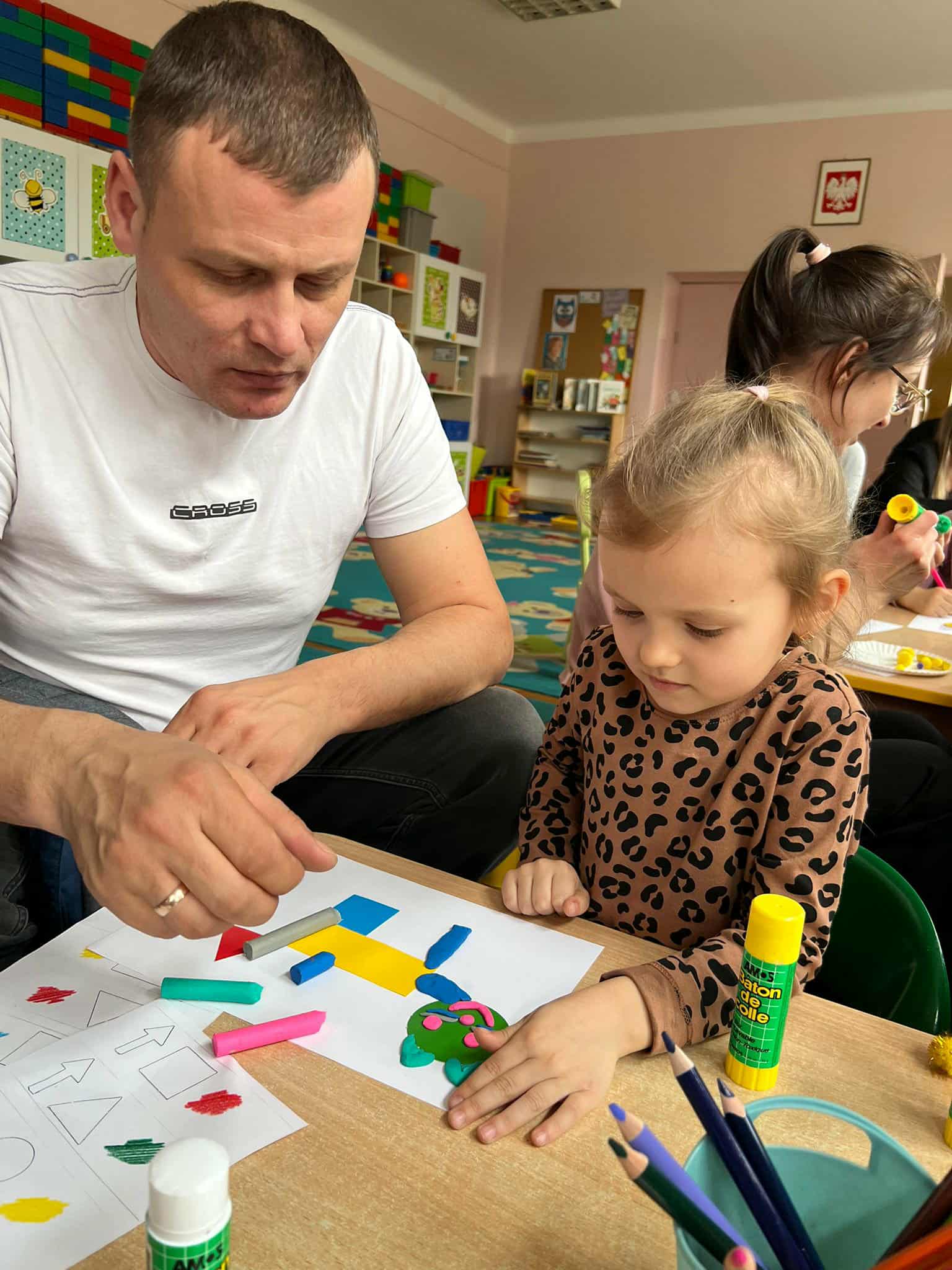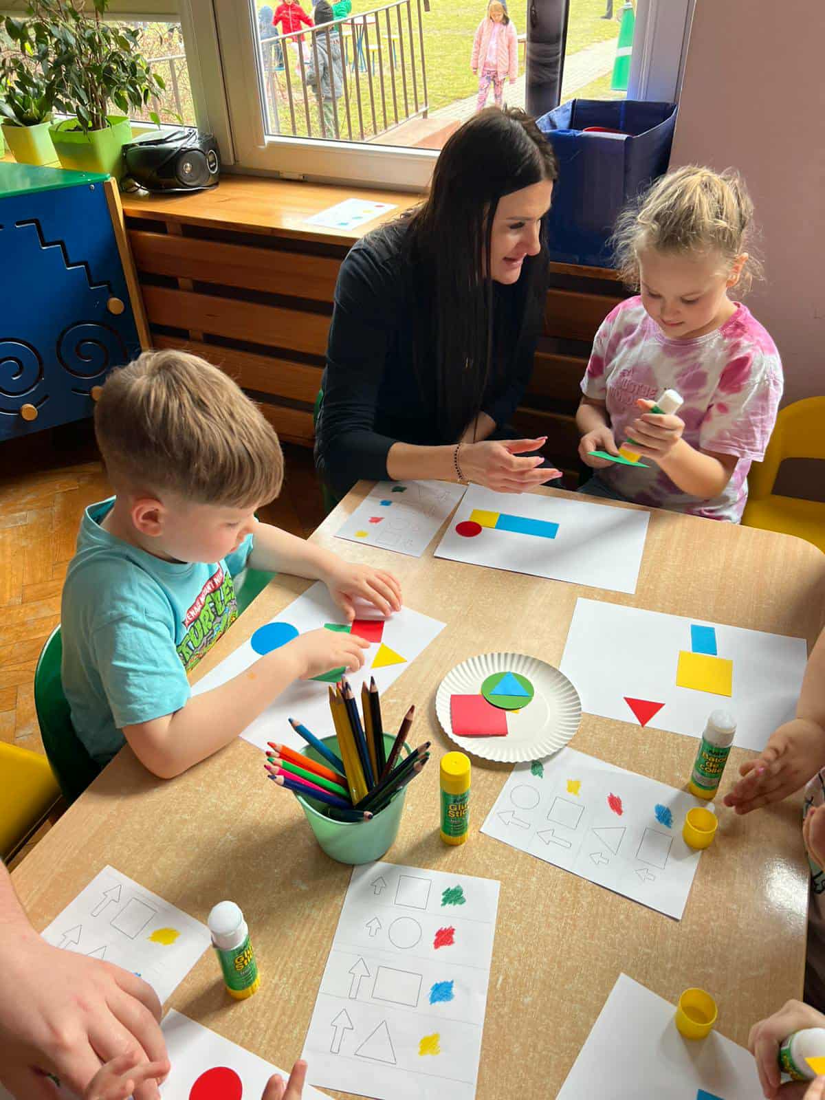 W czwartek z okazji Dnia Matematyki w grupie ,,Motylki” odbyły się zajęcia otwarte dla Rodziców pt.: „Zabawy z figurami geometrycznymi”. Głównym celem zajęć było utrwalenie nazw i wyglądu podstawowych figur geometrycznych. Przedszkolaki miały okazję pokazać swoim rodzicom jak się uczą poprzez zabawę i ile już potrafią. Zajęcia łączyły w sobie różnorodne formy aktywności. Poprzez udział w zabawach dzieci utrwaliły pojęcia i umiejętności matematyczne, rozróżniały figury geometryczne – ich kształt i kolory, uważnie i ze zrozumieniem słuchały opowiadania, układały różne przedmioty z figur, posługiwały się pojęciami: duży, mały, nad, pod, środek. Rodzice mieli możliwość obserwacji umiejętności matematycznych swoich dzieci, możliwość zaobserwowania swojego dziecka na tle grupy rówieśniczej. Uczestnictwo w tego rodzaju zajęciach daje rodzicom obraz pracy nauczyciela z dzieckiem, pokazuje stosowane metody i formy pracy. Dziękujemy Rodzicom za obecność, dzieciom za piękną postawę i aktywność na zajęciach.